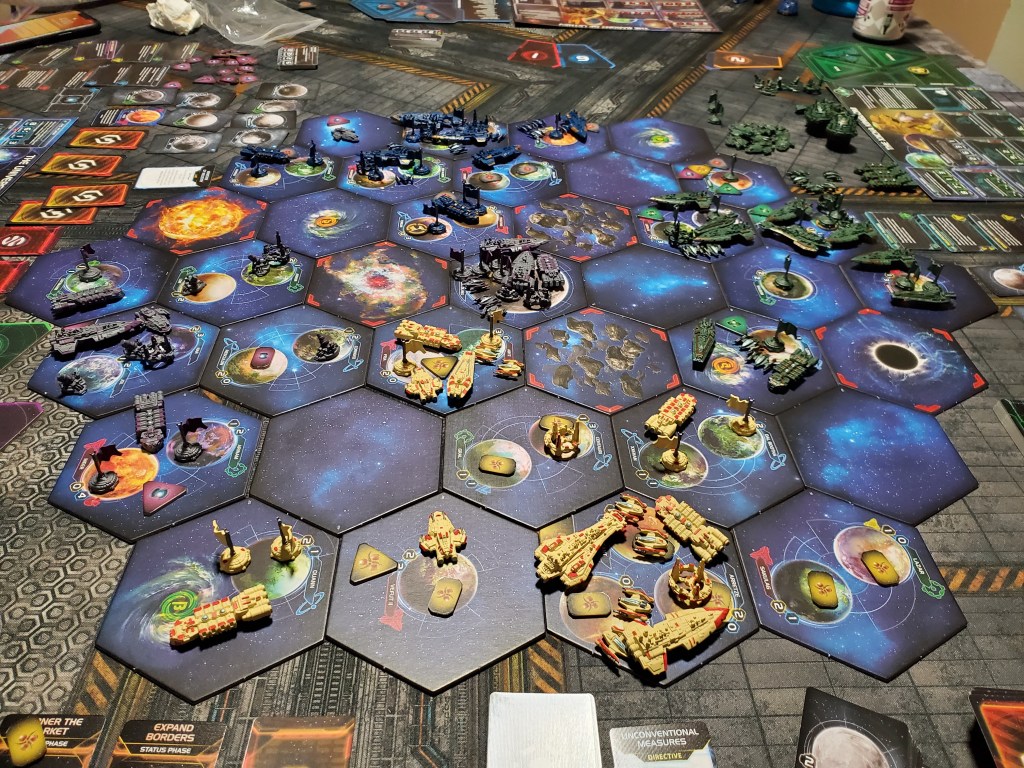 Finally got a game of Twilight Imperium in today! I say “finally” despite owning it for less than a month. All in all, the game was fantastic. It actually lived up to what I wanted it to be.