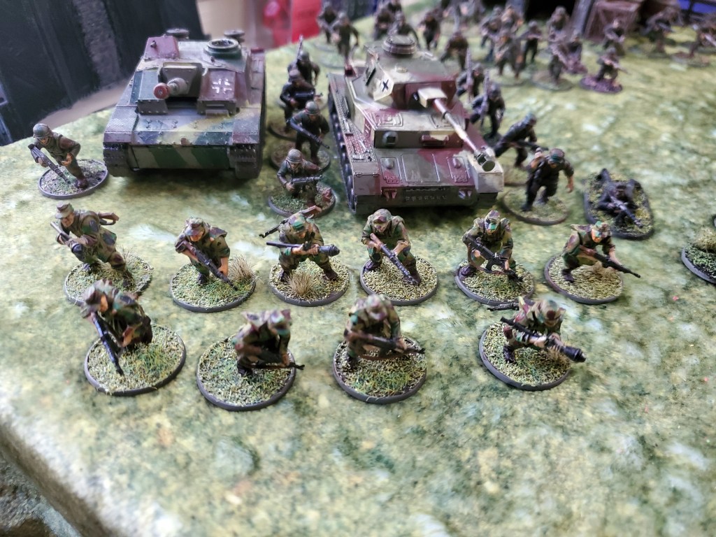 I went back and touched up my Germans with camo over the past week. It’s not much, but I’m much happier with how they look now. Also got a game of Chain of Command in with them today. Great match overall–I might post it later.