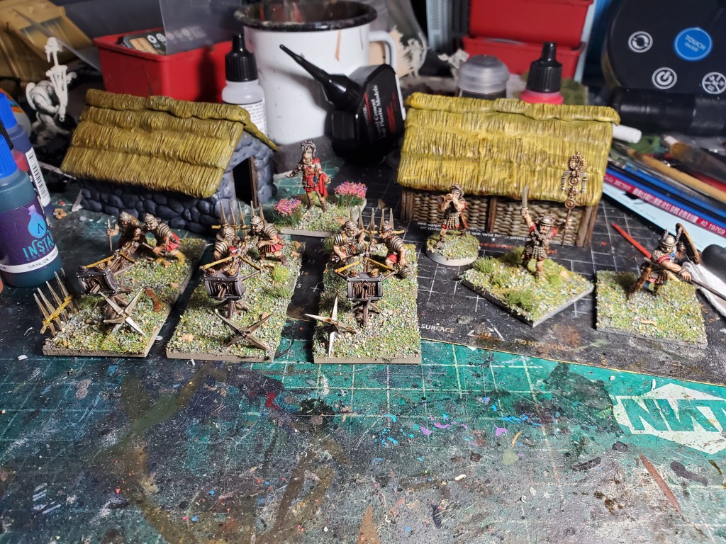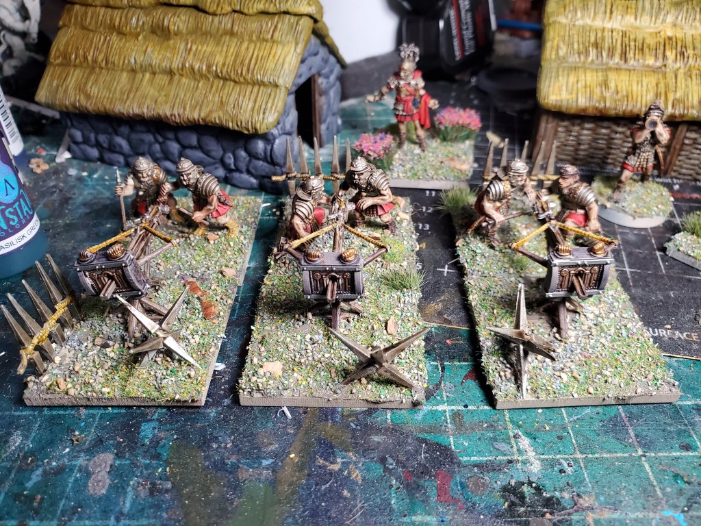 I also rebased a ton of old Romans and Gauls I painted two years ago. They were on 40mm squares and I moved them to 25mm rounds. I still need to redo their actually flock, so I’ll post those later with my completed Roman and Barbarian armies. I have a lot of fun stuff in the queue, like chariots, Legionaries, and maybe a baggage cart or two.