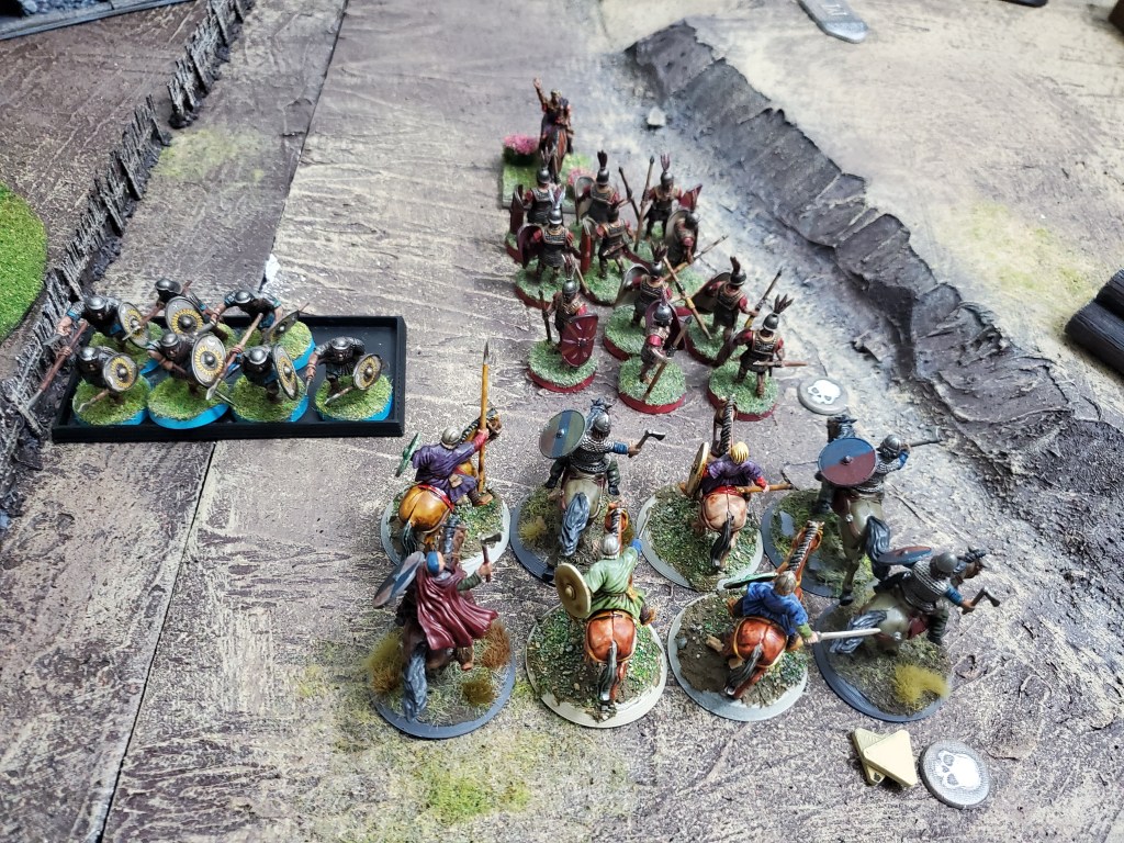 This is not my final version of the army. I plan to add three chariots and have more horsemen warriors with the Hearthguard being chariots.