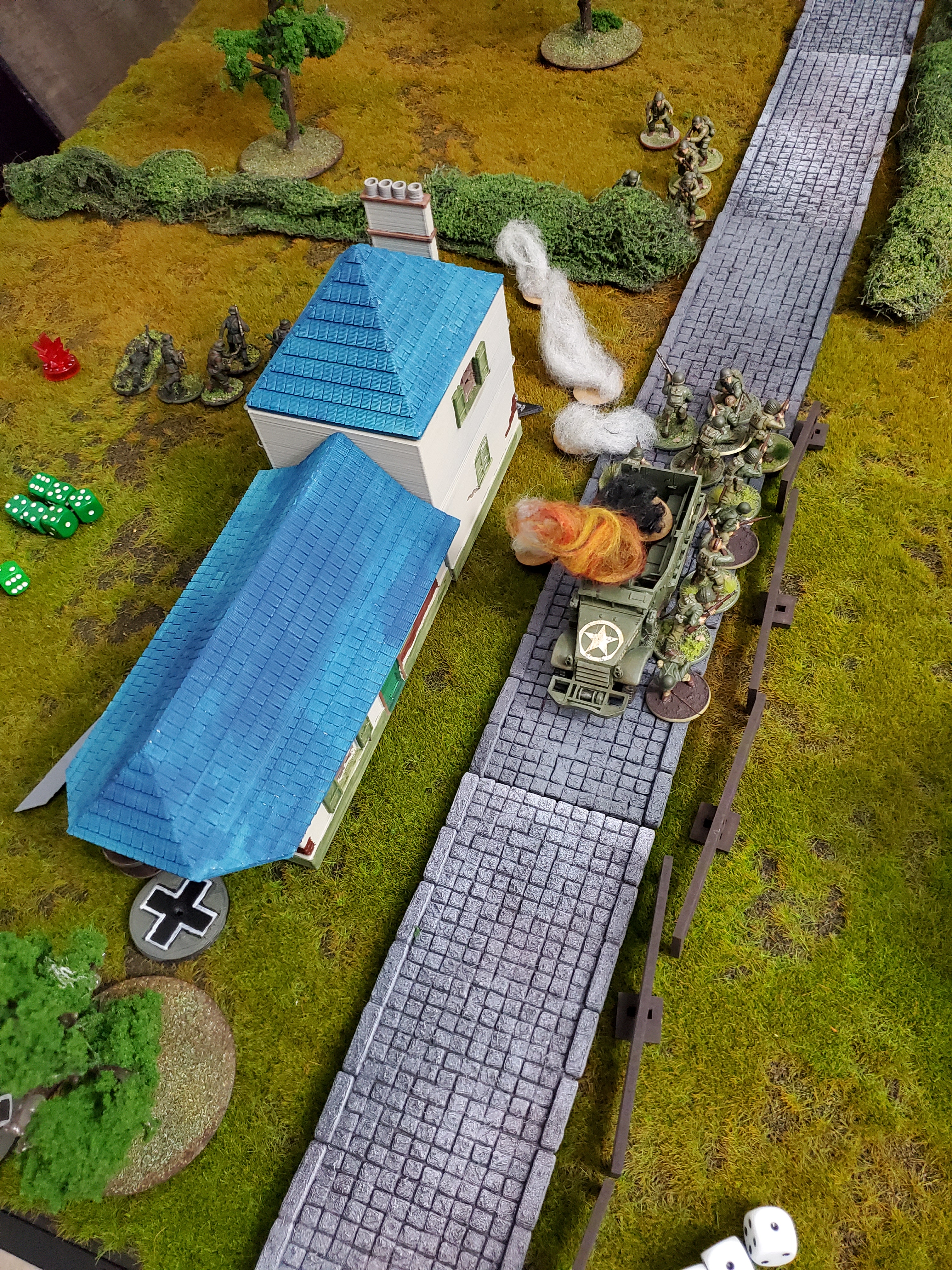 Games do look great on this mat. Models sit and move just fine, and terrain almost grips to it, so it’s hard to slide buildings around (big plus). The mat doesn’t bunch up. It sits hard and (roughly) flat. Rolling dice is an absolute no-go, though. You will need a dice tray.