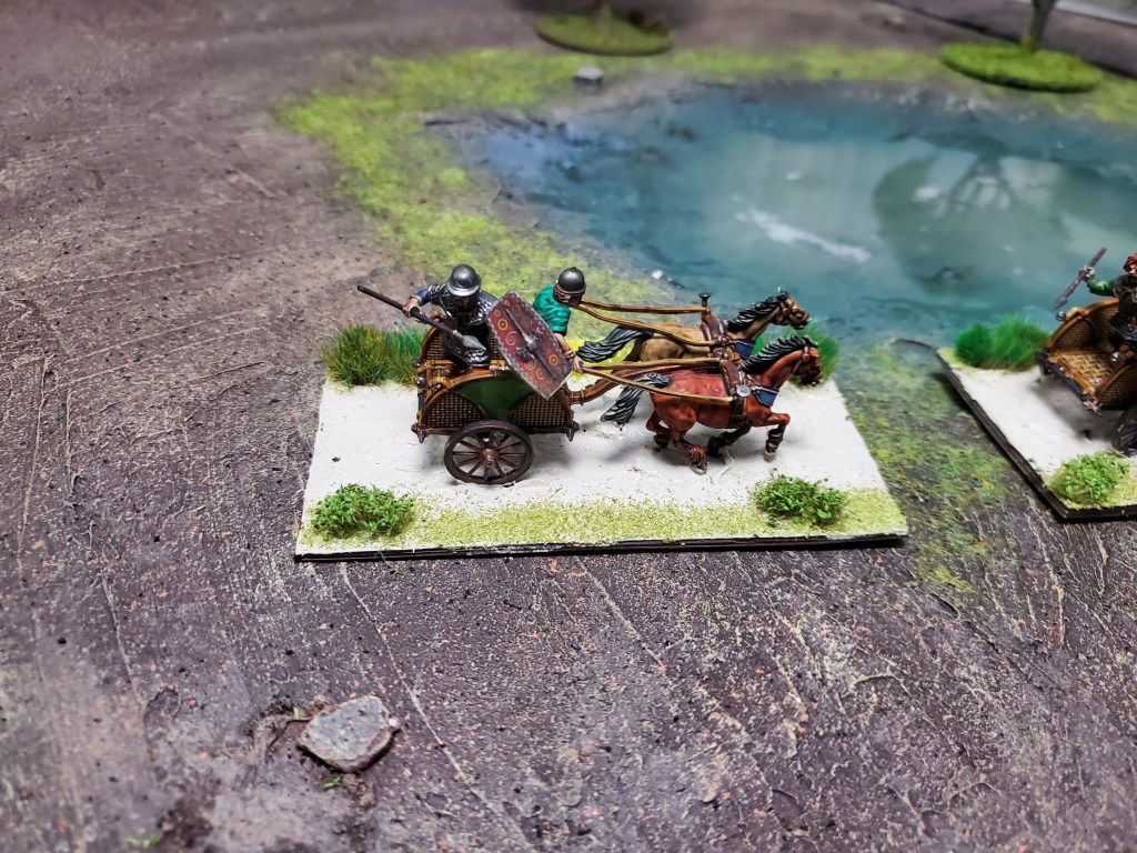 These are for SAGA and Infamy Infamy. They were a rather fun project to paint and put together. I really enjoyed picking out the poses. The set is from Victrix (Celtic Chariots) and what surprised me is it has an additional sprue full of options for riders, all of which you could build as stand alone models.