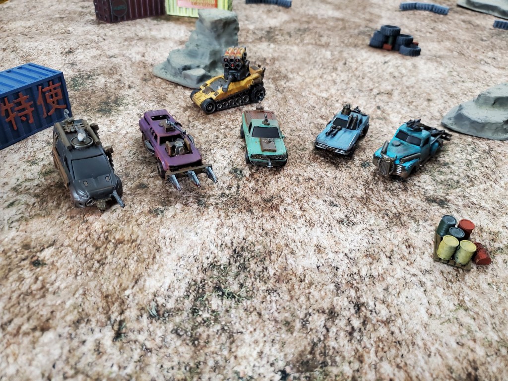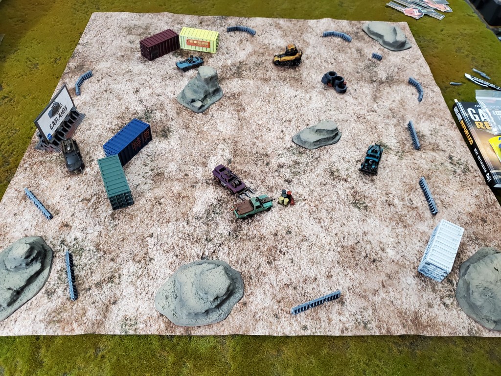 I’ve done up some terrain and an initial set of six cars for Gaslands. I say “Initial” because I already have six more purchased and four more customized awaiting paint.