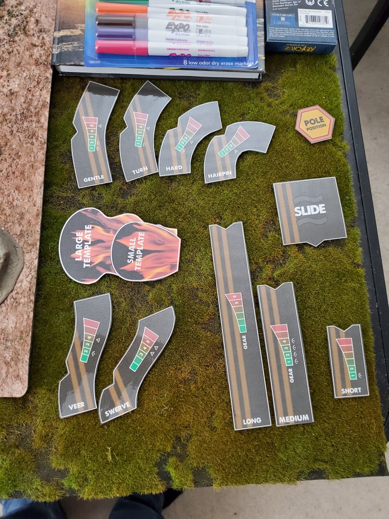 One thing I did find intimidating was the amount of templates needed. You can easily buy a single set for $20, along with another $12ish for some custom dice. I did buy the dice ( I’m a sucker for new dice) but for the templates, I printed, laminated, and cut some from a quick Google search.