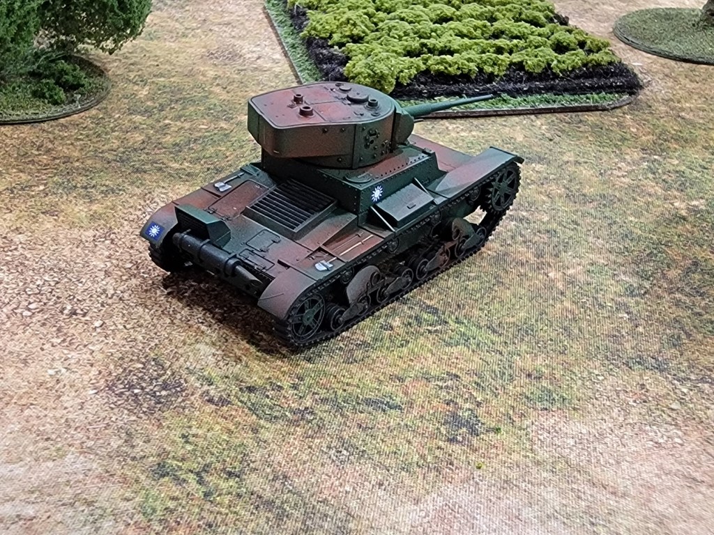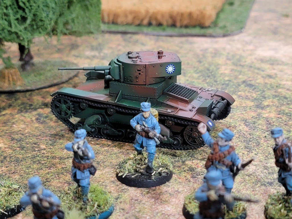 The tank chosen is a T-26. Honestly, the Chinese were severely lacking in tanks and I don’t plan to bring more than one per battle. I may produce an M4A4, which the British supplied to the Chinese late war. Otherwise, best as I can tell, their most numerous tank was the T-26. Not much to write home about, but I do like Soviet tanks, so it was fun to build and paint.