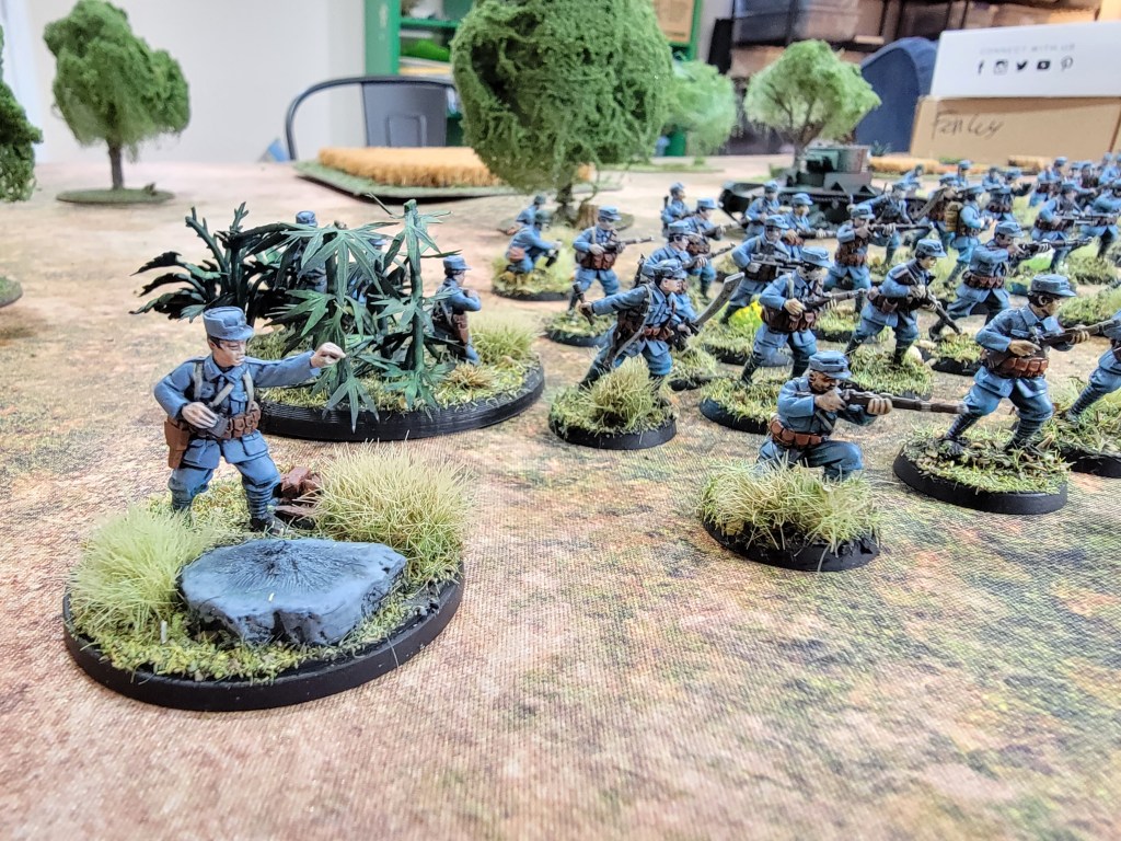 Either way, it made for a fun project with a lot of research having gone into it. My uniforms aren’t perfect, though. I went with the very early war blue uniform just because it stood out versus my other WW2 forces. Really, they should be more of an olive drab with more inconsistent uniforms.