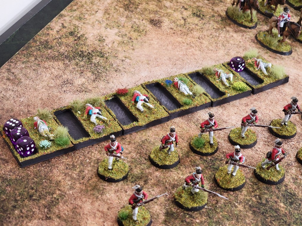 What else might one ask? Oh! The flag is just a print out. Plain paper and glue. Nothing fancy. This isn’t really an army I expect to see a ton of action, so a free flag that looks alright was plenty good. The dead men came with the Perry infantry and the Warlord artillery kits. Their bases are bases I made and uploaded onto Thingiverse for people to be able to print.