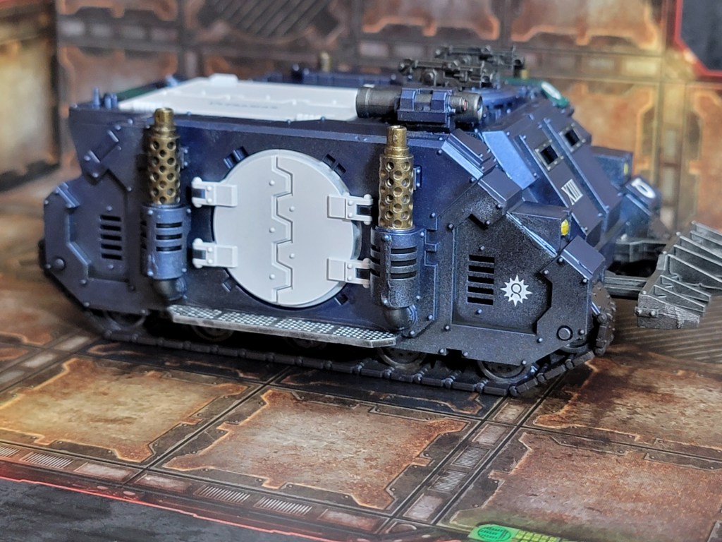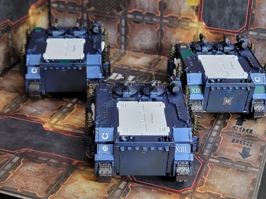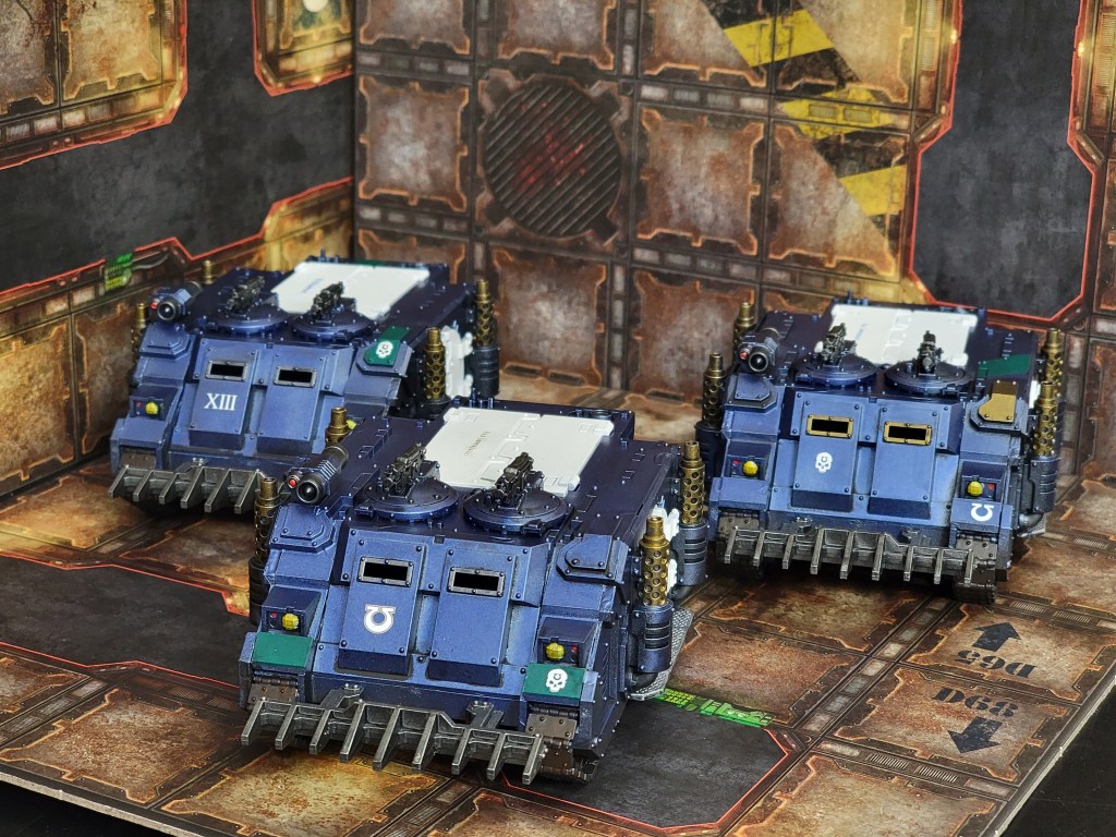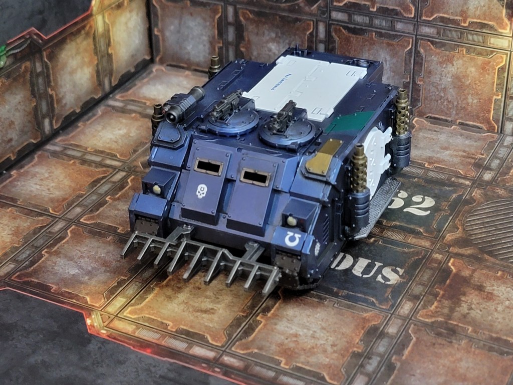 So far this month I’ve finished 40 Space Marines, 10 Terminators, a Praetor, a Sicaran Venator, and 3 Rhinos.