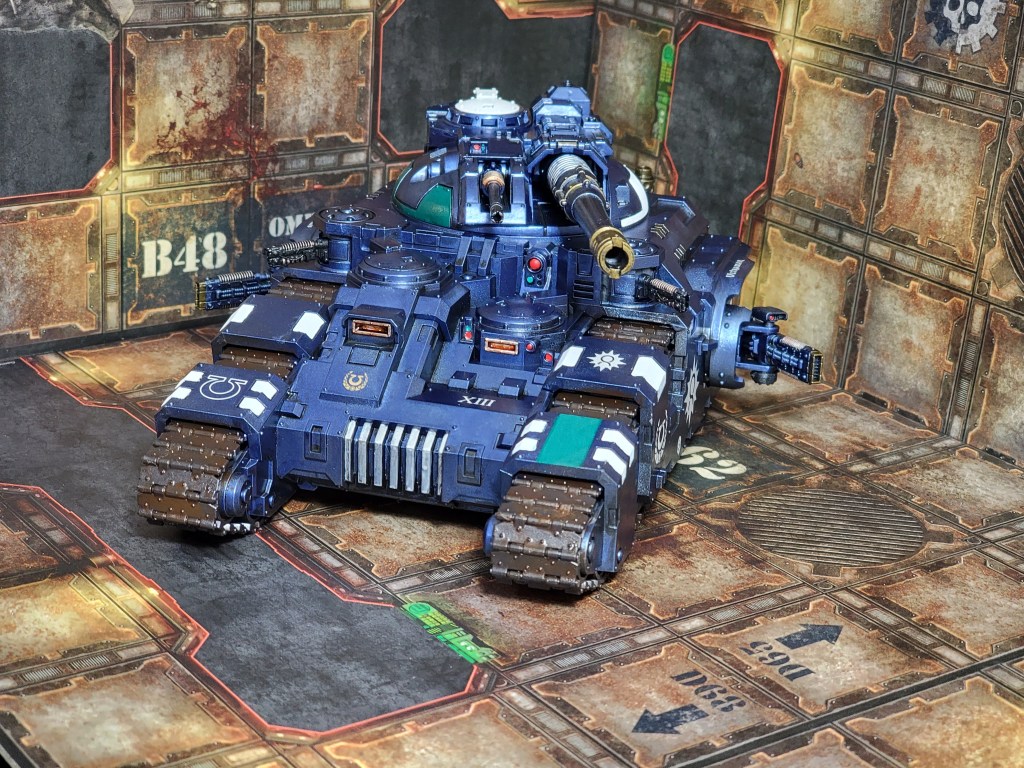 I finished up my Kratos tank for my Ultramarines. I really enjoyed painting it up–it’s an excellent kit. I also finished my Cataphractii Praetor. Similarly great model, though the kit lacks options.