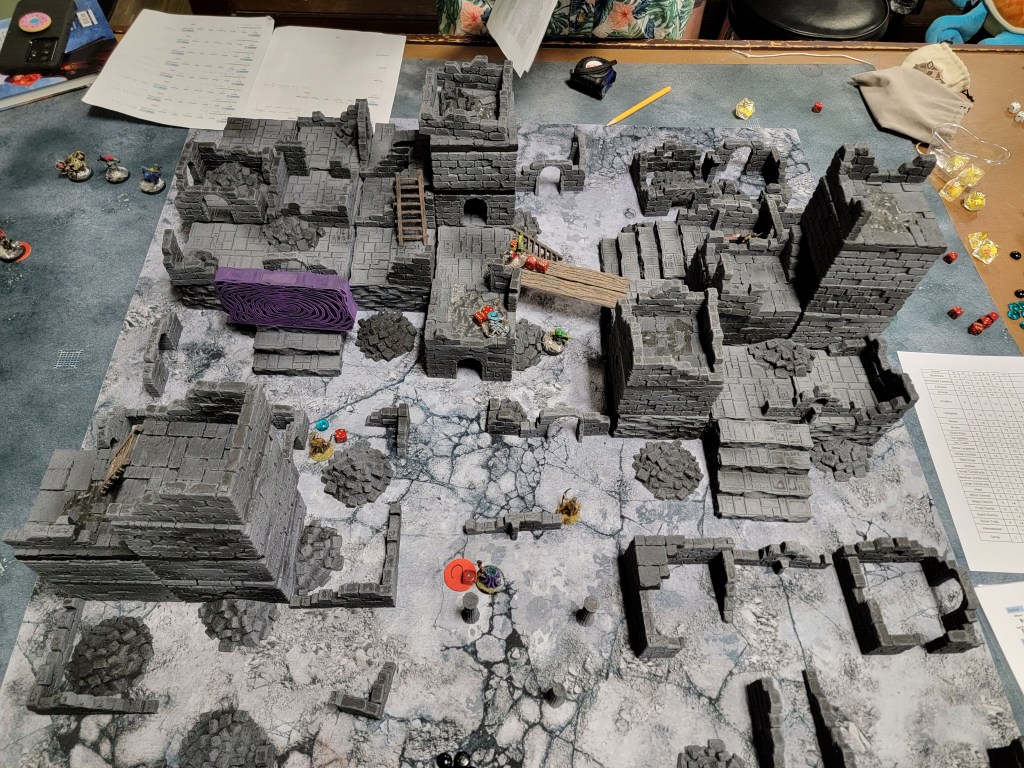 I managed to stall him using some Wall spells, but my victory really came down to silly lucky rolls. I managed a 20 or two in there to one-shot some of his men, turning around dire situations. I further managed to saturate one of the contested objectives to the point where he fell one point shy of killing my last man, who absconded with the treasure despite a Planar Tear holding him up.