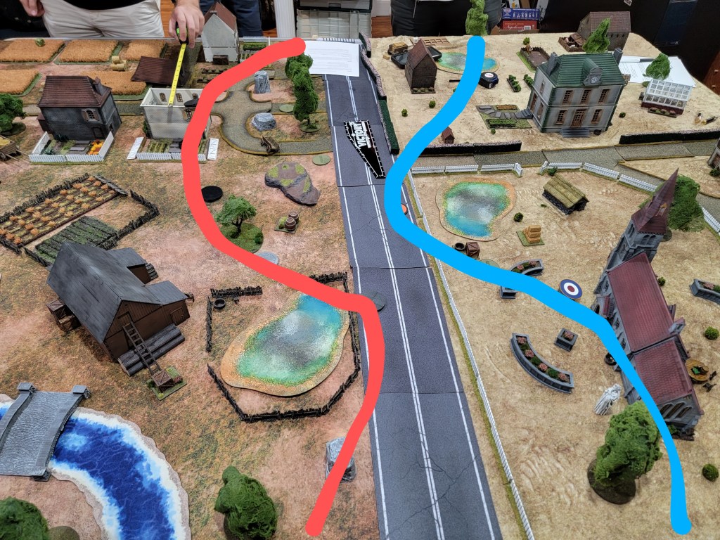 Their intent was to place their Anti-Tank gun in a central location with clear line of sight to both enemy flanks, while having the Americans deploy South and the British to the North. It was a static defense relying on smoke and well positioned anti-tank fire (AT gun, bazookas, and a PIAT) to ward off tanks attempting to blow up the buildings.