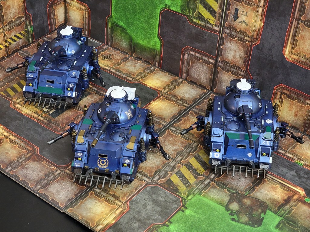 These are a batch of three Predators and a Land Raider Proteus Carrier. They were fun to paint, but my steam on my Ultramarines has mostly run out. Happy to have banged out so many of them and it msfe for a satisfying project. I’ll find time to do a proper parade, but it’ll likely require a big setup.