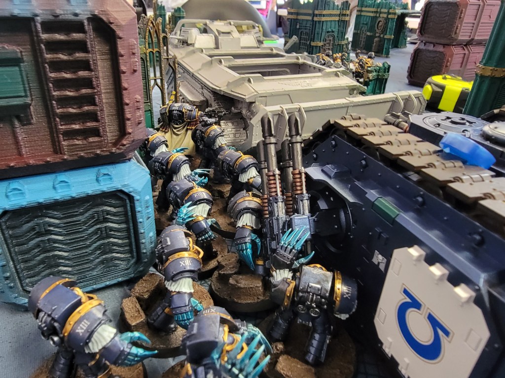 My original plan was to get my infantry into my opponent’s face and follow up with supporting fire from the various tanks, while finally landing my rhinos and predators onto objectives to gain some points. The fundamental flaws become apparent pretty fast: much of the list dies quickly. The terminators aren’t great against real problems (20 man marine blob? No issue. Other terminators? Uh…) and I lack real damage output or durability due to being so elite.