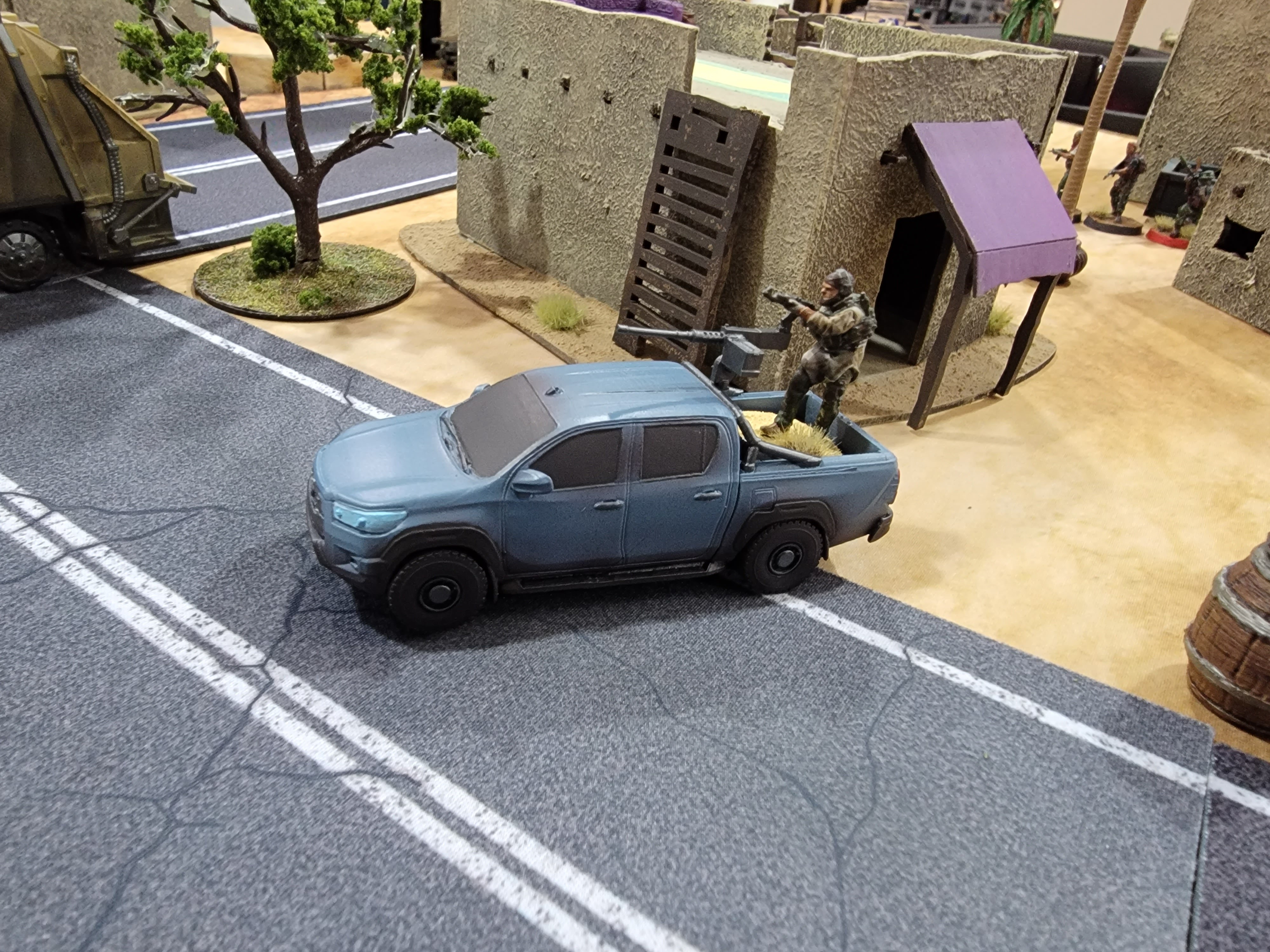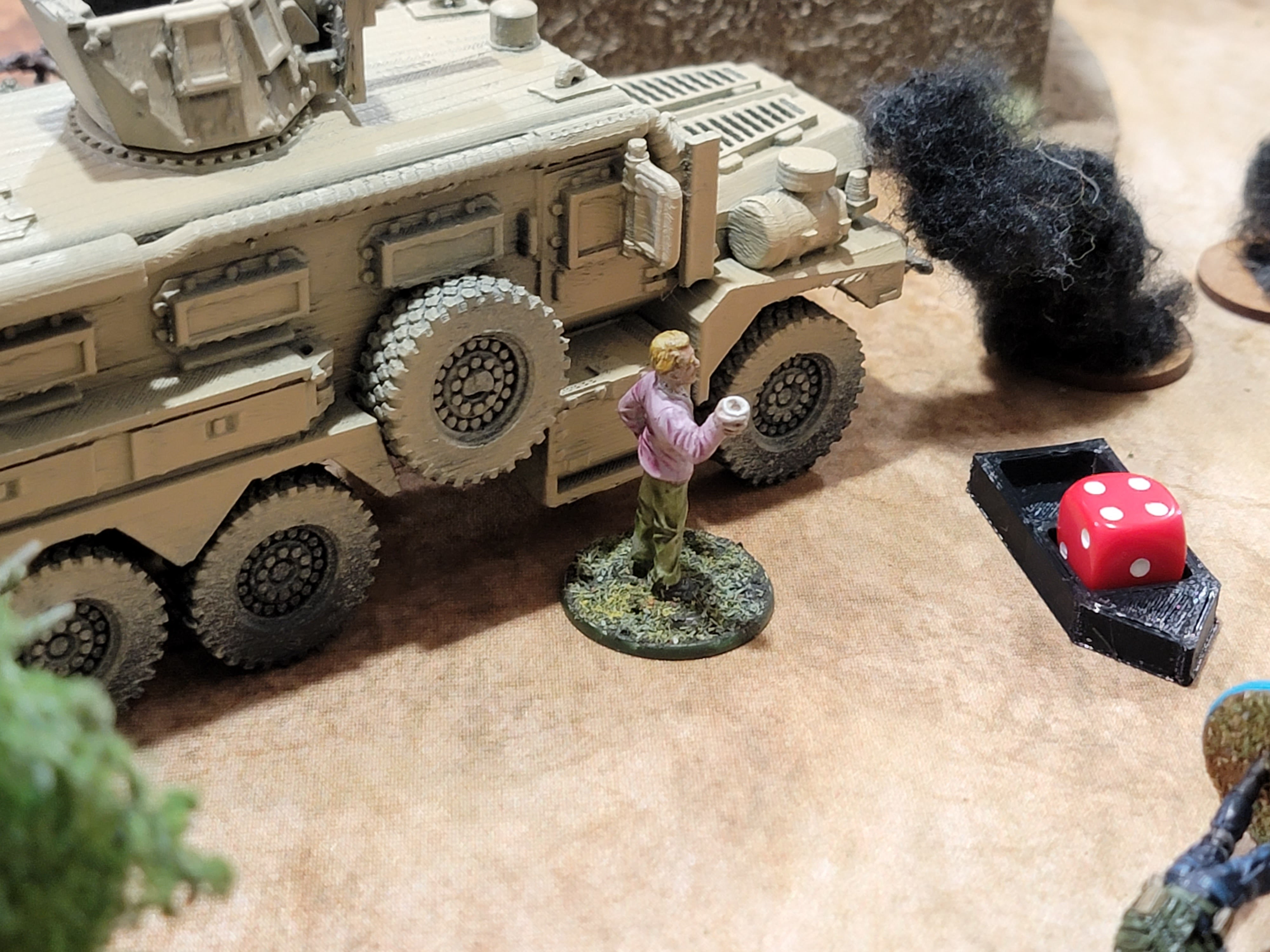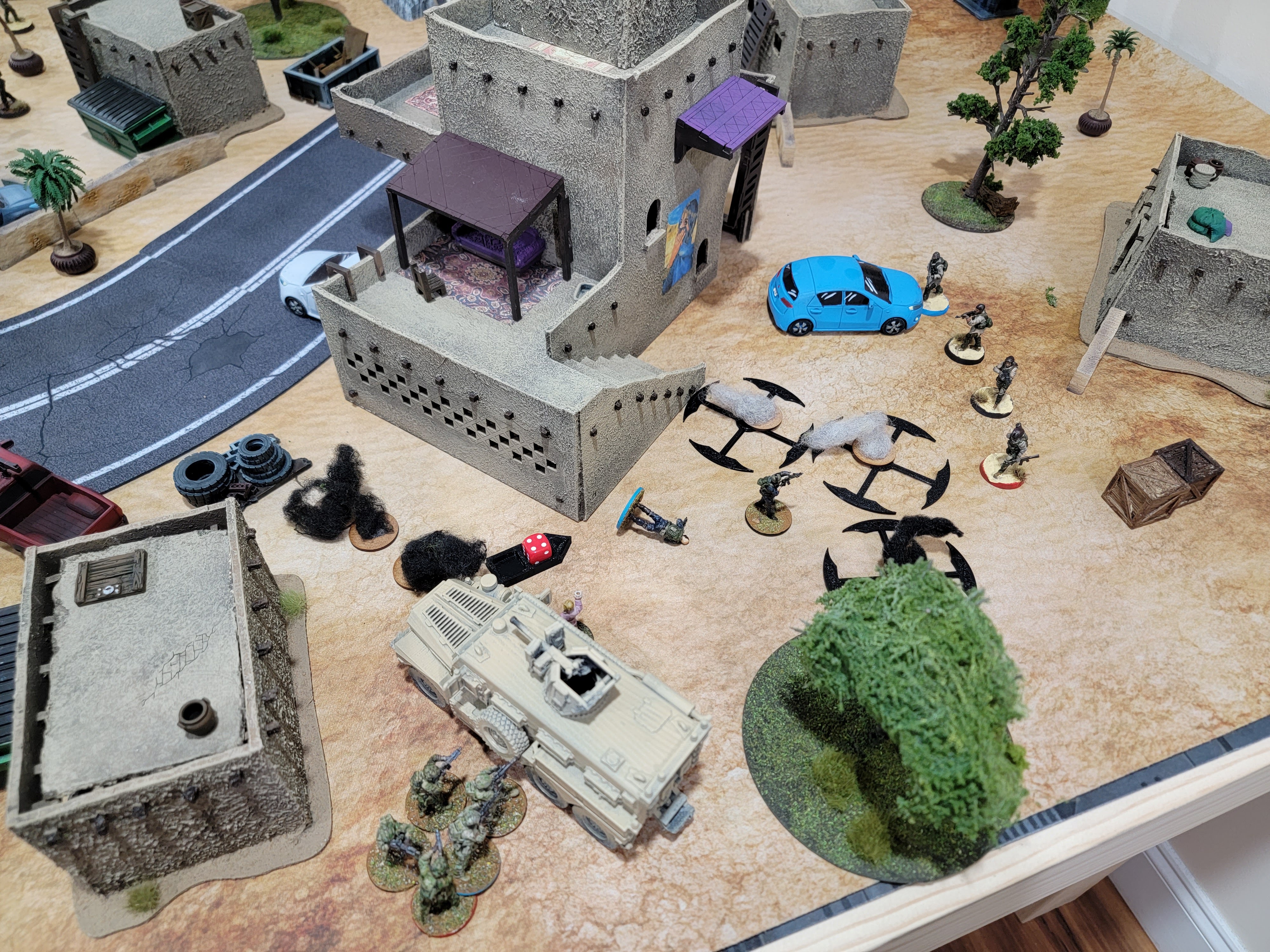 Unfortunately for me, we couldn’t quite get to the HVT in time and he coated the area with smoke, which stopped me from being able to shoot down the helicopter altogether (which was represented by the unpainted MRAP in the images below). Too little, too late on my part.