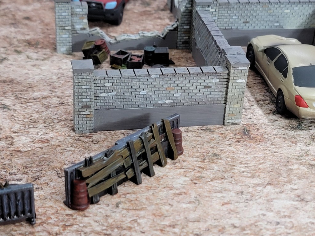 Wrapping this up is a bunch of walls I also 3D printed. They are from Patrick Miniatures and they’re exactly what I needed for my Middle East boards. As you see in the photo at the top of this post, they allow me to take a single building and extend it into most of a 3×3 board. This really does a great job of highlighting how important scatter is. With a 3D printer, you could buy one or two MDF buildings and still end up with a very full, playable 3×3 board full of high-quality terrain.