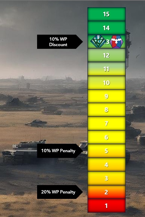 Warchest Points, as mentioned earlier, are the points spent to take campaign level actions. Want to move an Army Task Group? 100 points. Want to assault an enemy position? 150 points. Want to build a Forward Operating Base to help move supply forward? 300 points.