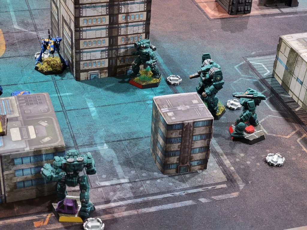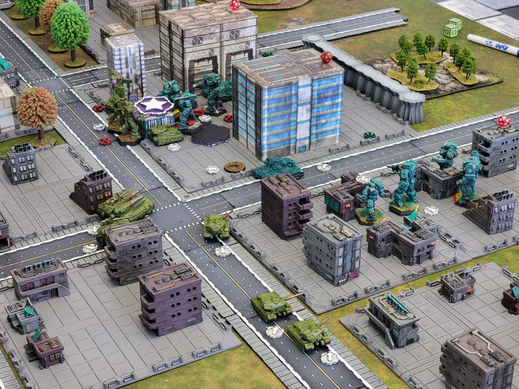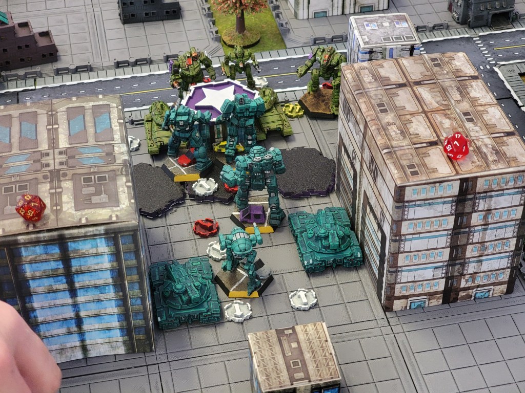 This gives just enough that everything feels distinct. Mechs can find cover behind buildings, but tanks have to actively spend their movement phase rolling to find cover. VTOLs are hard to hit by merit of simply having a high TMM value, but will die if anything connects. You have all the elements in place to easily play out a combined arms game at a level my eight year old can understand.