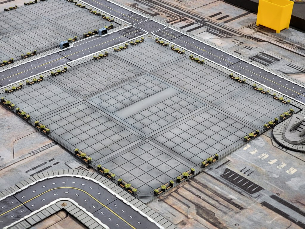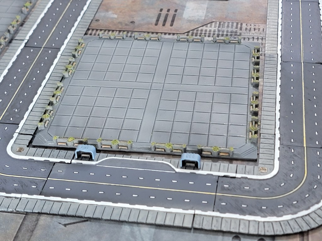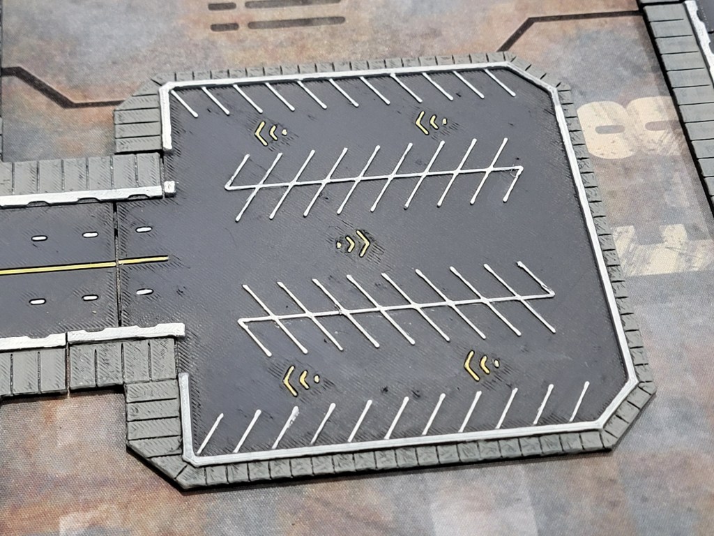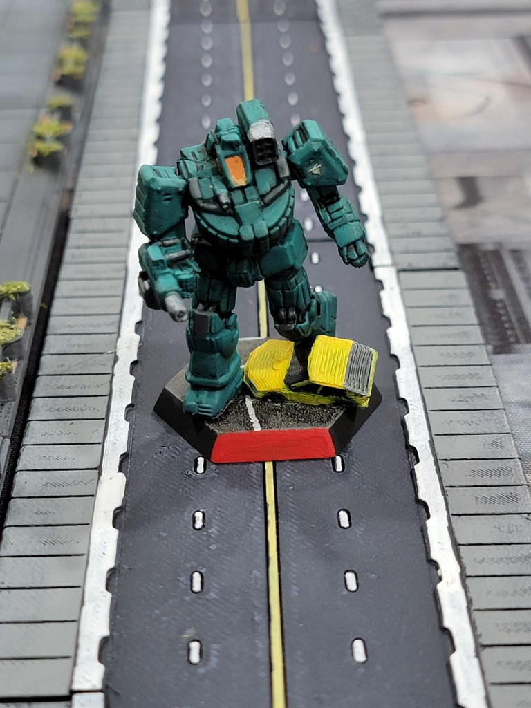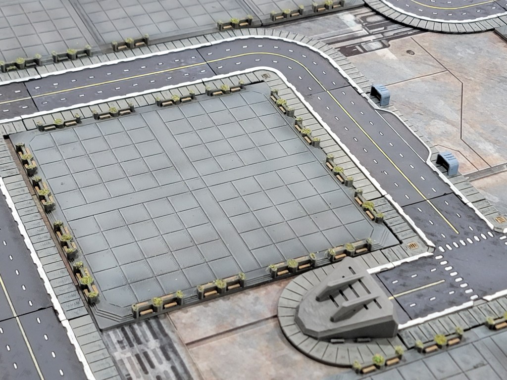 I’ve spent a large chunk of the last two weeks painting up roads and plazas for Battletech from Thunderhead Studio’s printable offerings. It’s been a time consuming project as painting the stripes (which are graciously molded into the prints) was a slow process.