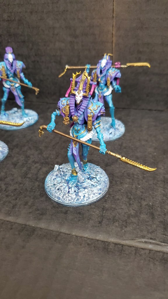 Years ago, I tried out Conquest: The Last Argument of Kings. It was fine, but a bit underdeveloped, and convinced me rank and flank just isn’t a great idea at larger scale. The miniatures were interesting, though, and these Spires models felt so alien I decided I had to do more with the basing. As you can see, I went with a cracking ice theme.