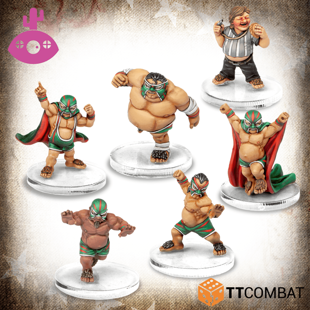 Well, it’s a fantasy wrestling game that has zero pretense of being serious. You can throw TOTALLY-NOT-COLONEL-O’NEIL from Stargaters alongside Djinn Deisel to fight a bunch of halfings. It’s a game where a giant sharkman will throw a mummy into the post, then bodyslam him into submission. It’s a fun, silly game revolving around over-the-top character concepts, key positioning and maneuver, and fast matches.