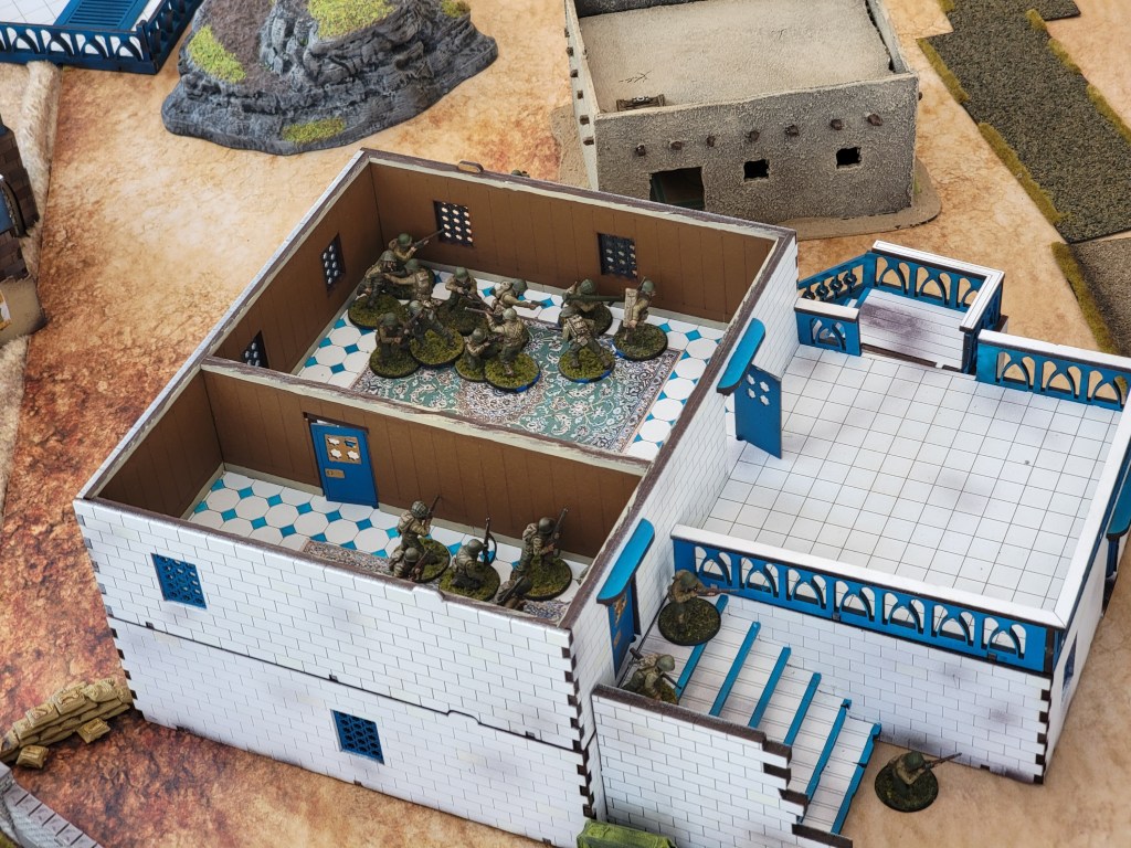 The real scrum happened around the crossroad, appropriately enough. Repeated attempts by the British to throw back the Romanians in close quarters met variable success. In the end, the Romanians and their allies managed to barely hold on for the second turn end, their entire force being just one bad roll away from total morale collapse.