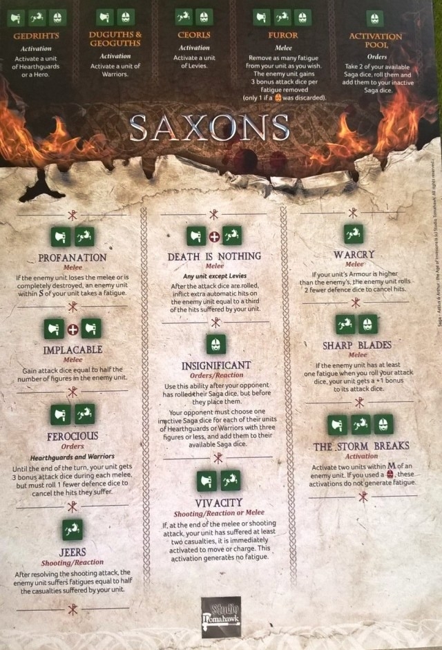 Let’s look at a final example of something that could be Friendly Friction but isn’t: SAGA’s activation system. In SAGA you roll dice which you then assign to a battle board that allows you to both activate your units and buff their activations.