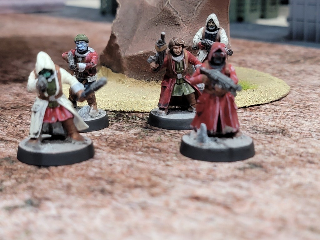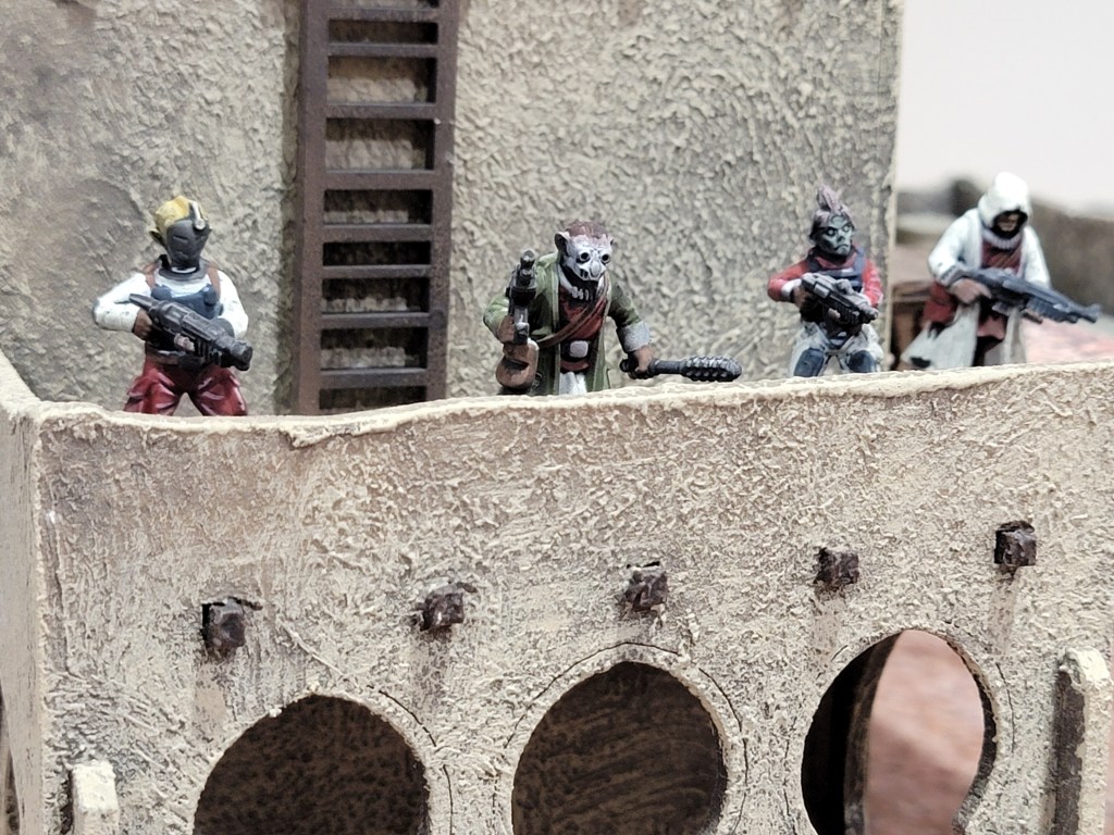 In preparing for Xenos Rampant with my son, I decided to make use of some boxes of Stargrave miniatures I had laying around to produce an army of ragtag desert folk.