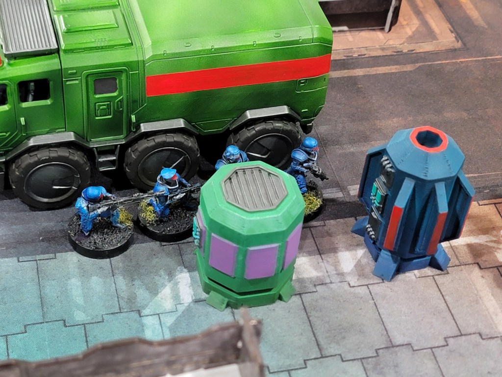 Not to sound too down; there’s been a ton of advantages to this system I’ve enjoyed. It’s been a great excuse to setup various tables, as you’ve seen throughout this post. That’s been fun! My son has started to build his own custom units, which has been an excellent experience for him. I’m hoping to push him to redefine into Heavy Infantry with more specialization, like having personal shields or teleportation tech. The game is a great excuse to build kits that don’t have games assigned–like the Wargames Atlantic stock of fun scifi concepts. Matches are fast, which I really look for when gaming with my son. Against an adult I imagine we’d take 45 minutes per match average. Against my son that’s a little over an hour average. That makes it easier to fit into a weeknight or Saturday morning before we go out in the afternoon.