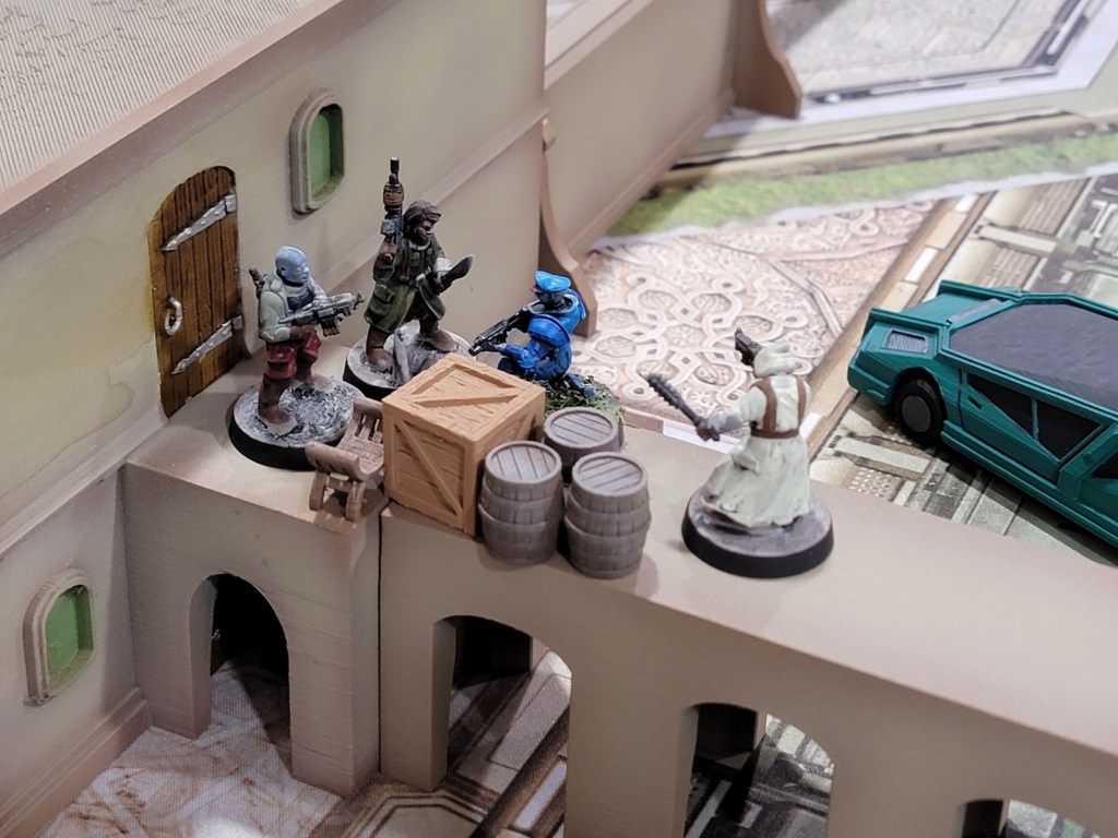 For example: we played “Scenario Charlie: Convoy Ambush.” I was escorting three vehicles across the board and my son had to stop me. If he captured a vehicle by defeating it in melee, he would gain 5 VP. If he destroyed the vehicle via shooting, he’d gain 3 VP. I gained 5 VP for each I removed from the board and 3 VP for each that came off with only 1 or 2 health left. So if you’re my son, trying to stop the vehicles, what do you do?