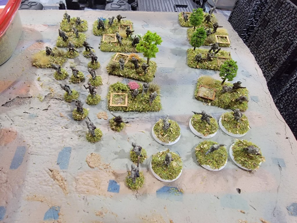 In comes a 15mm German platoon for Chain of Command I now have nearing completion. It’s a project I’ve sat on for a while but never started. I hated painting them until I put the wash down and realized just how fast they were. Moment-to-moment I found the project less satisfying than 28mm yet when I realized I had painted a whole platoon in a day (while interspersing it with chores, video games, and homework) the joy of 15mm hit me. It’s just easy.
