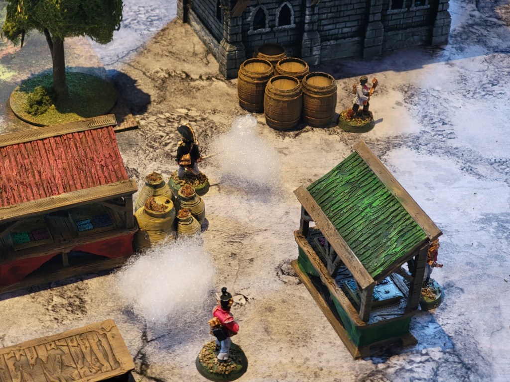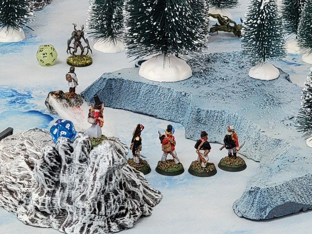 Silver Bayonet is a skirmish sized player versus player versus environment campaign oriented game built on an evolution of the systems used in Frostgrave, Ghost Archipelago, and Stargrave before it. It takes place in the Napoleonic era in a growing list of locales (Iberia, Italy, North America, Egypt, and on and on). Most matches consist of two sides trying to abscond with some valuable treasure while fighting both each other and the monsters spawned by the environment.