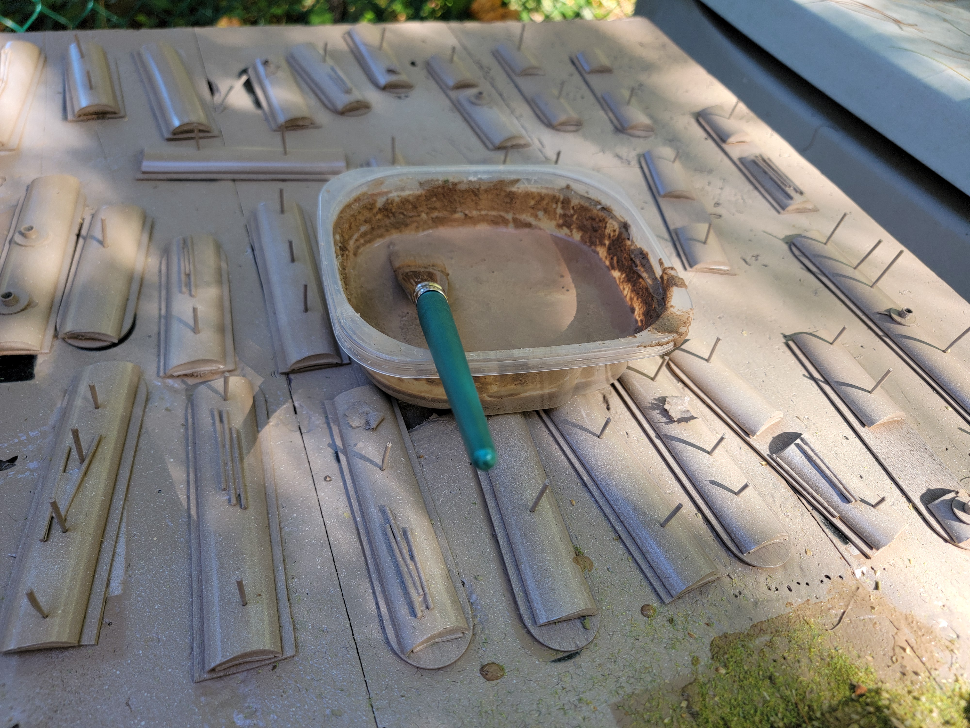 1. So an unfortunate reality of my terrain is I stow it by throwing it into bins haphazardly. All terrain I make has to be able to survive this form of abuse. They’re currently in a large, 40L bin alongside all of my other greenery. That’s the purpose of all the layers of glue–it helps to keep them from falling apart.