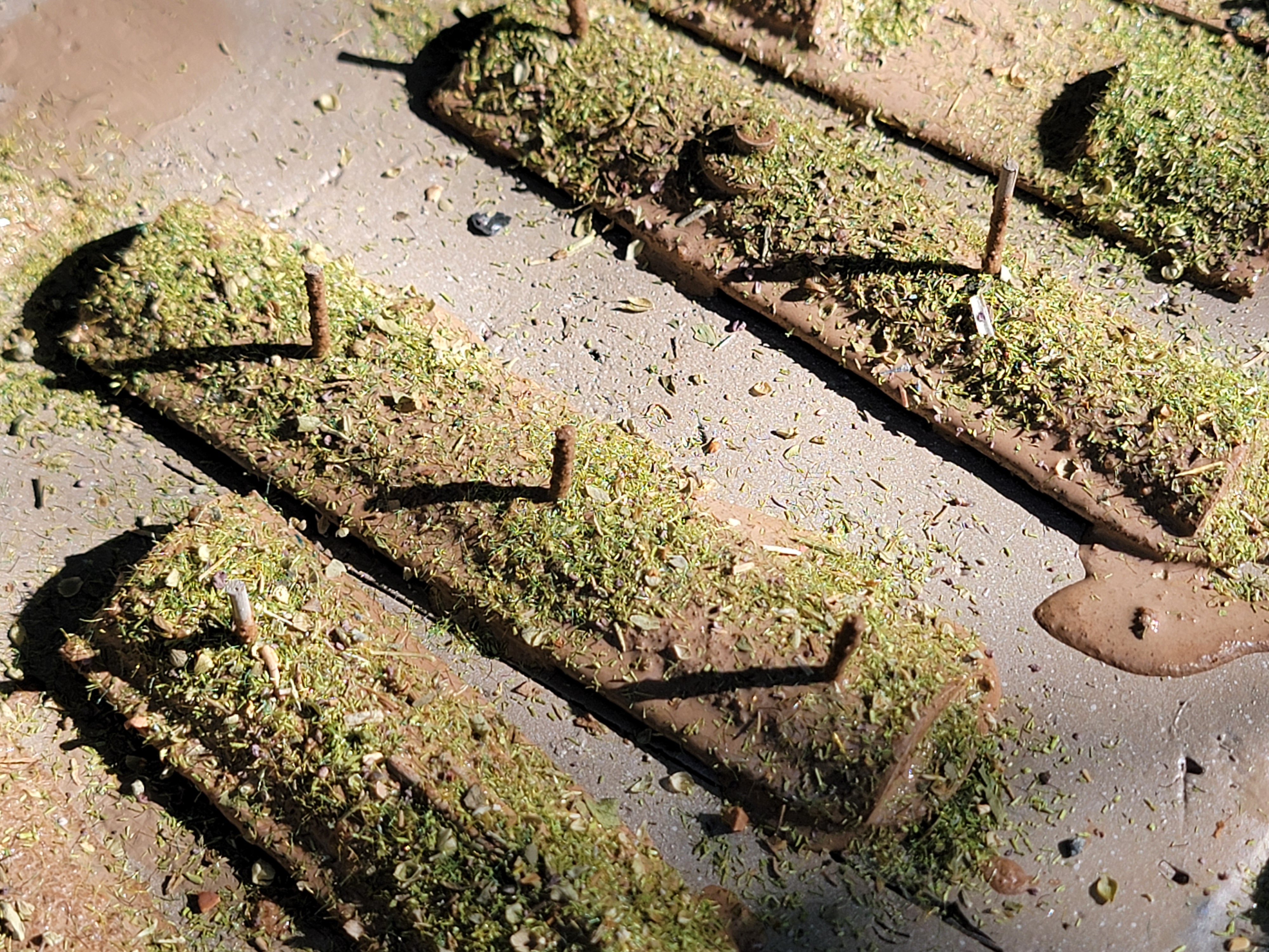 1. The Flock Glue: Mix brown paint, glue, and water (I do about 10:40:50). Add sand if you have it. You’ll use this for getting the initial flock on.