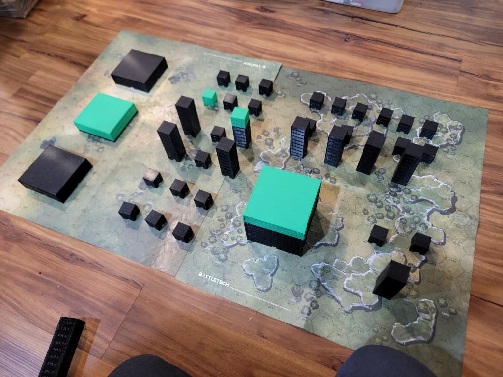 I’ve printed and tested the roads–might even have them ready before we go up. That’s the “easily painted” aspect at work. My son is excited. The plan is to build a small campaign where he fights his way through a city and captures it block by block. I’ll play the “enemy” composed of less skilled forces trying to slow him down while he has to deal with resupply and maintaining his mechs. He’ll win in the end, of course, but it lets me beat him down time to time without feeling too bad since he’ll still win the overall campaign.