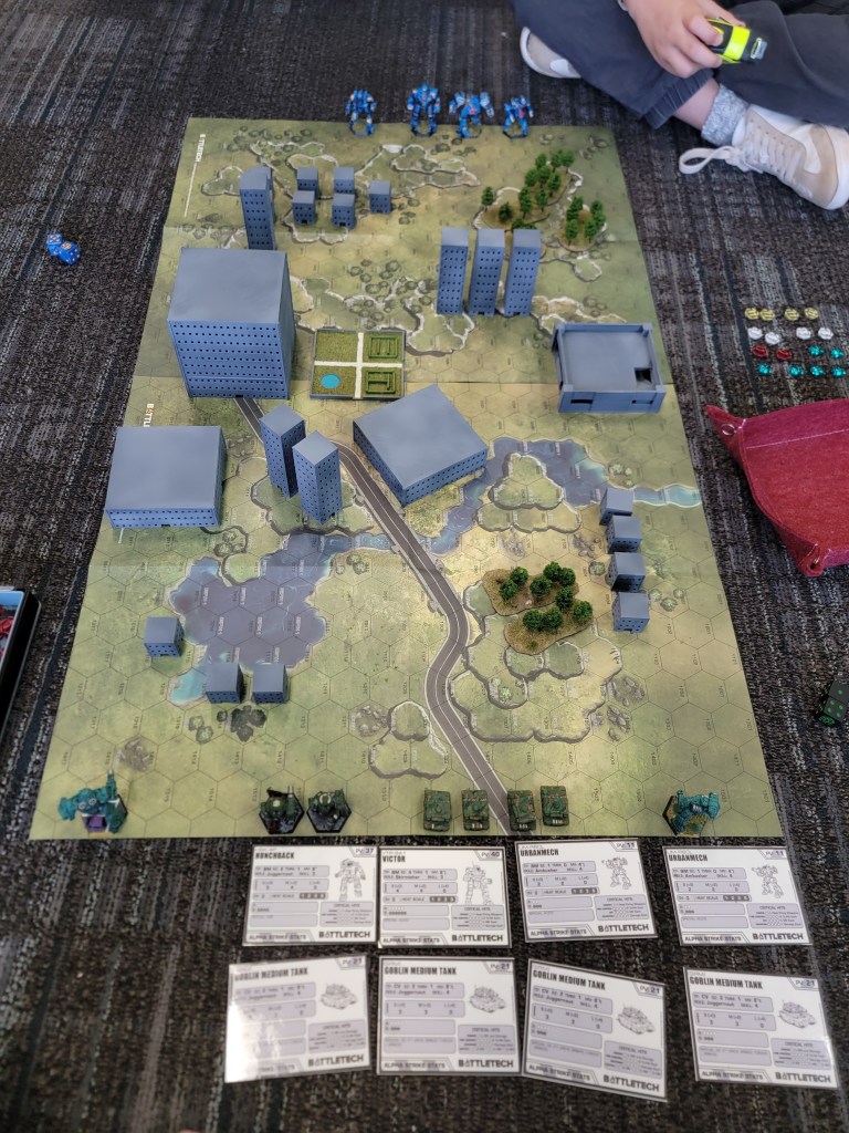 My Urbanmechs were predictably not great and my other mechs didn’t hold up very well against his outright firepower. The strength-in-numbers approach for my lance of Goblin tanks really saved me.