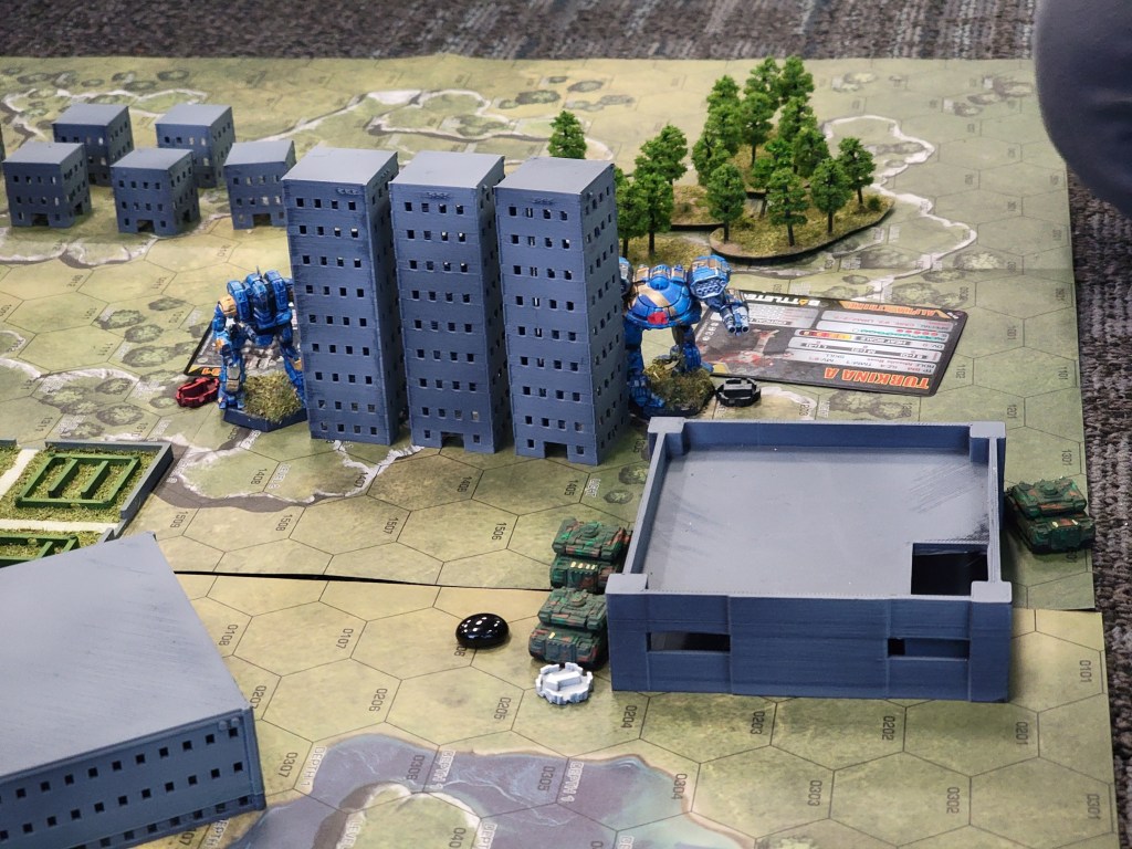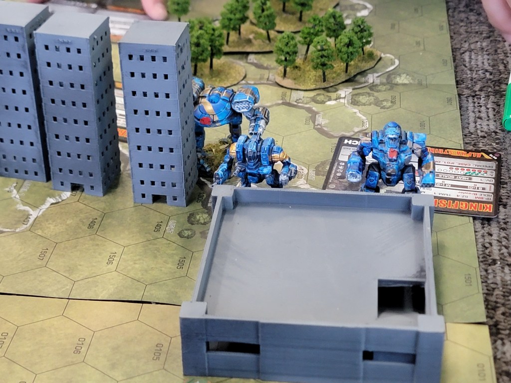 It was a fun, short match and a cool proof of concept. I half want to fill a bin with these buildings and scatter elements just to see how many tables I could densely pack. I didn’t find the time to significantly expand the set but I’ll be putting up a small, cheap pack on one of the STL sales sites to augment my already free pack released on Thingiverse. This was a fun project and a great little interlude before I start my next big swing: prepping and painting a Dropfleet Commander UCM fleet. I let my Canadian nieces pick the colors, so expect to see a fleet that incorporates red and purple over the next few weeks.