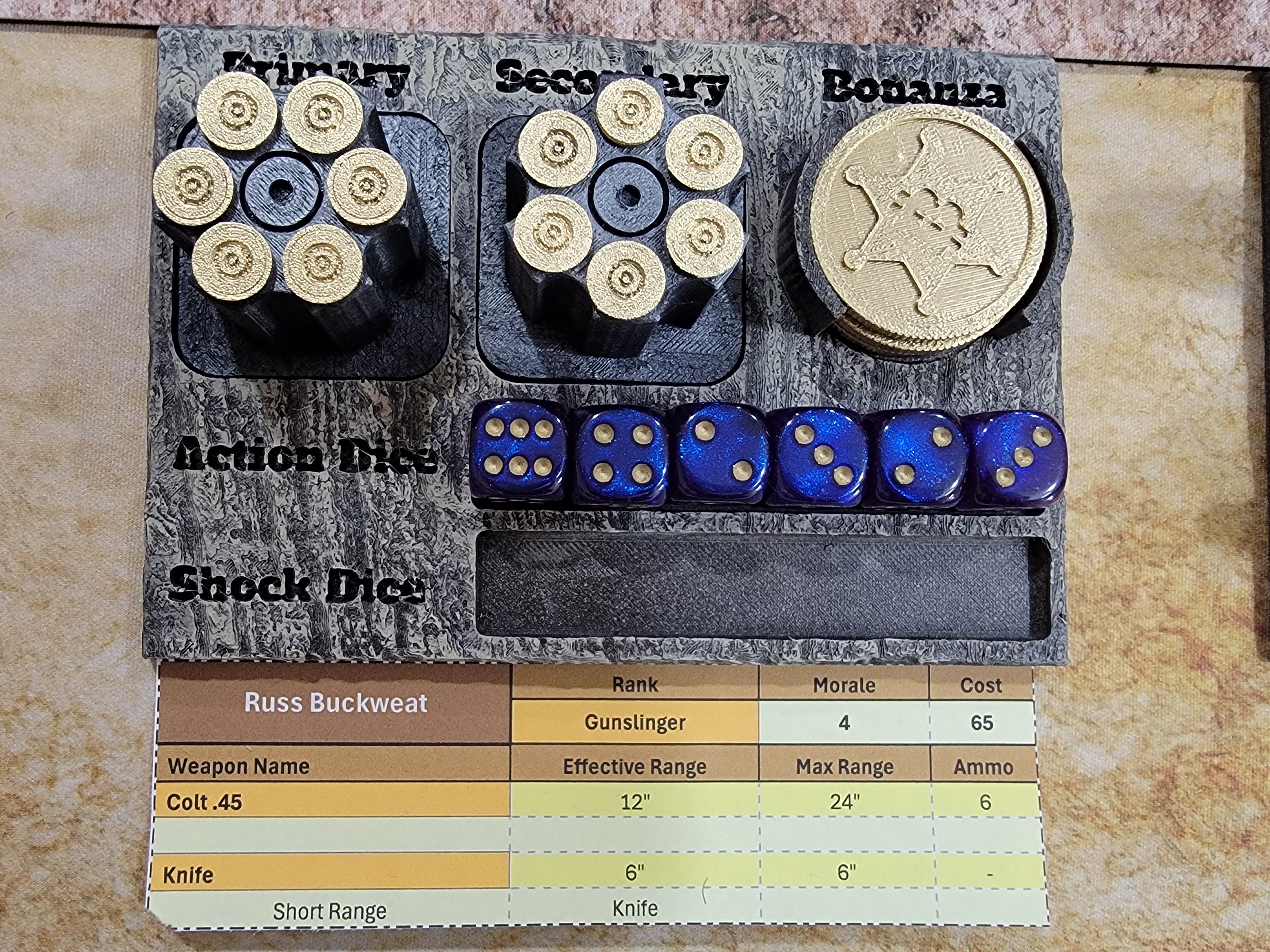 I’m mildly in love here, I admit. I’m gushing. I’ve built out a campaign tracker and list builder in Excel (Coming soon after some testing). I’ve printed the dashboards. I’ve built additional small ‘learning’ QRS sheets for the core weapons and how Trick Shots and Hollywood Stunts work. I’ve made special cards to track wounds! I’m all in.