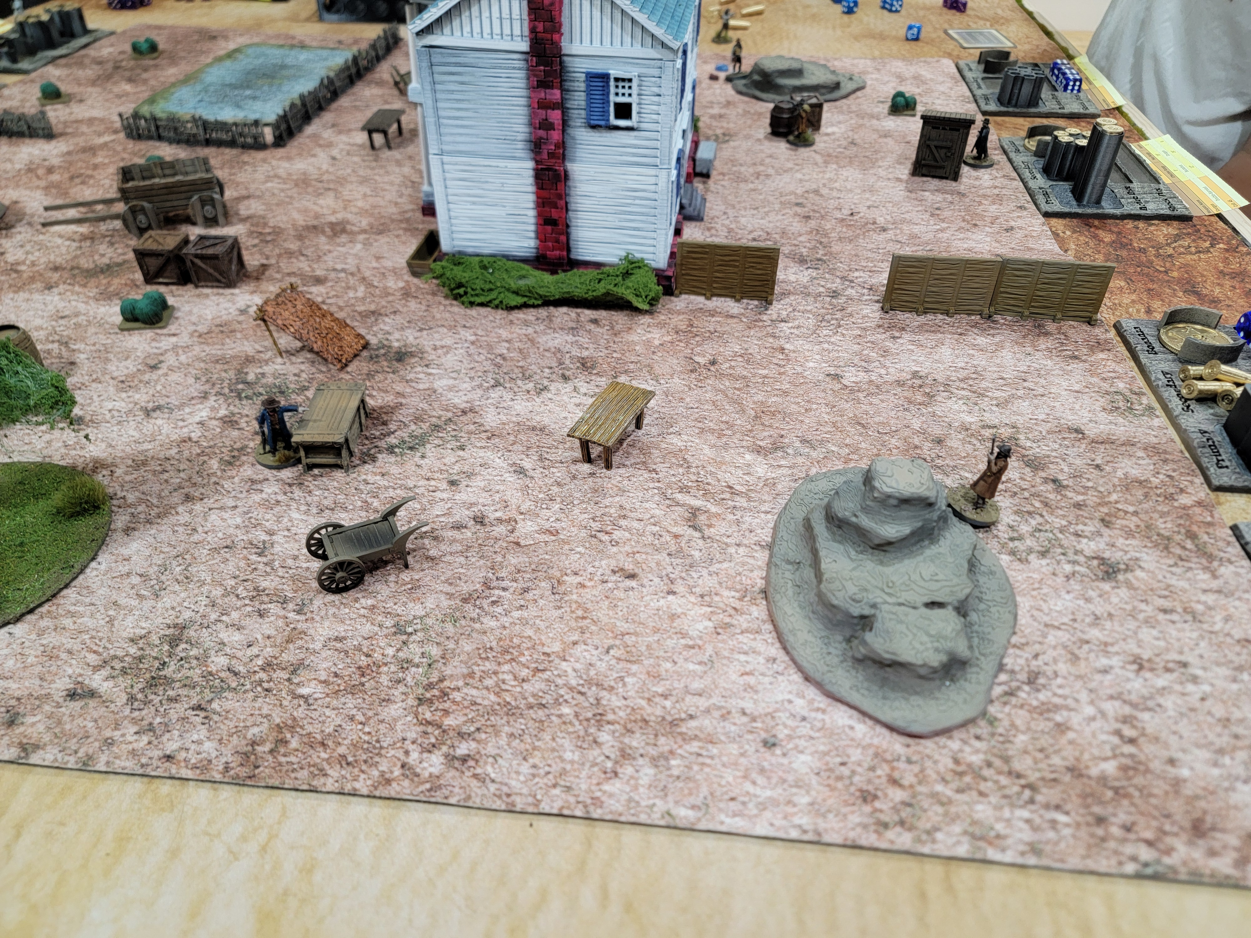 Really, that describes the system broadly. It was not hard to learn–my son is playing it fully. My buddy I played with tends to pick up rulesets at a very methodic pace, but absolutely had it down in that game no problem. It’s just that you have to be willing to role play a little. This is a narrative ruleset in so many ways. It has rules for everything you can think of: townsfolk, wagons, mounted combat, jumping on a moving train (via Hollywood Stunts). Got a cowboy movie moment? This game wants to live it.