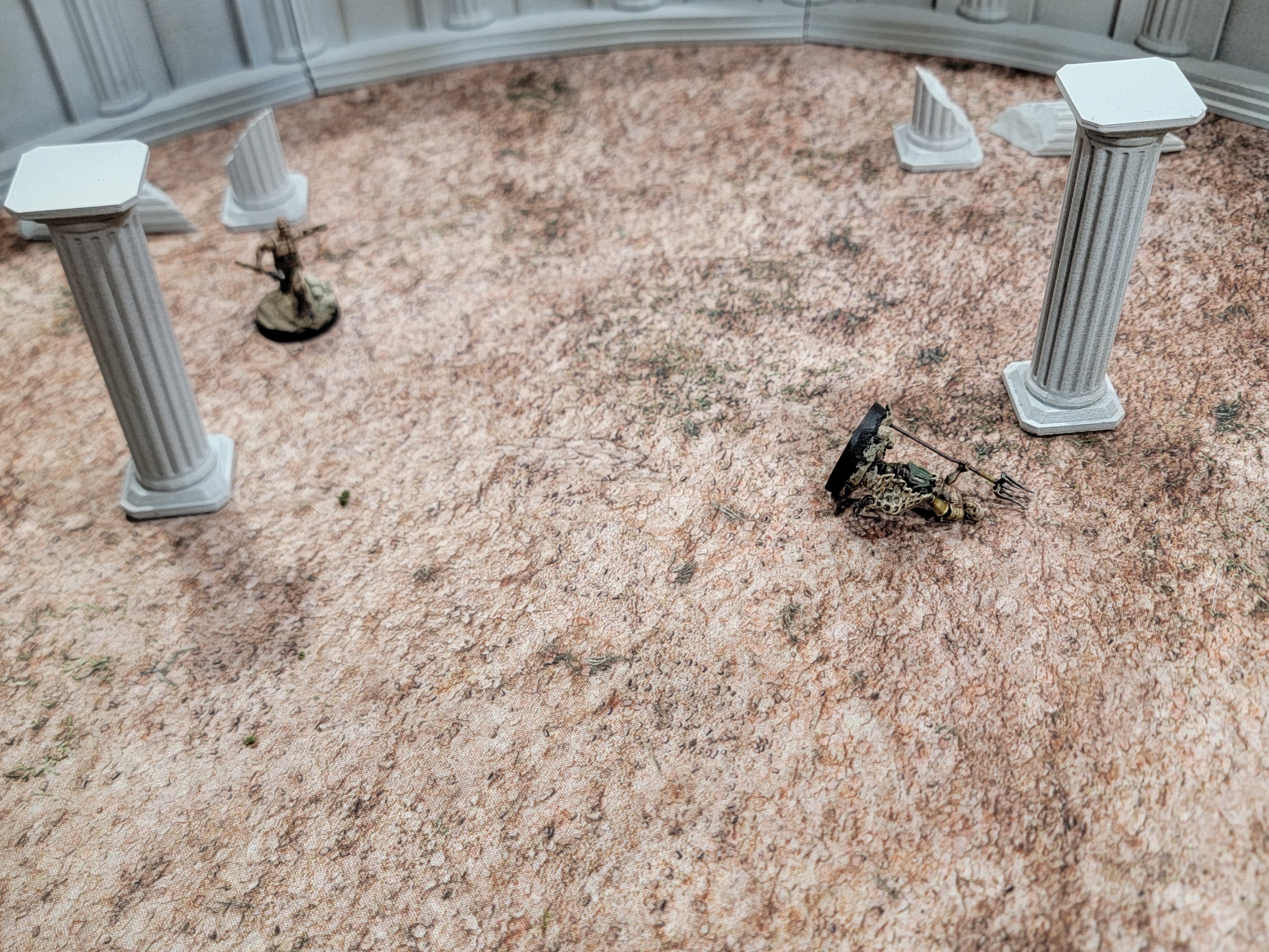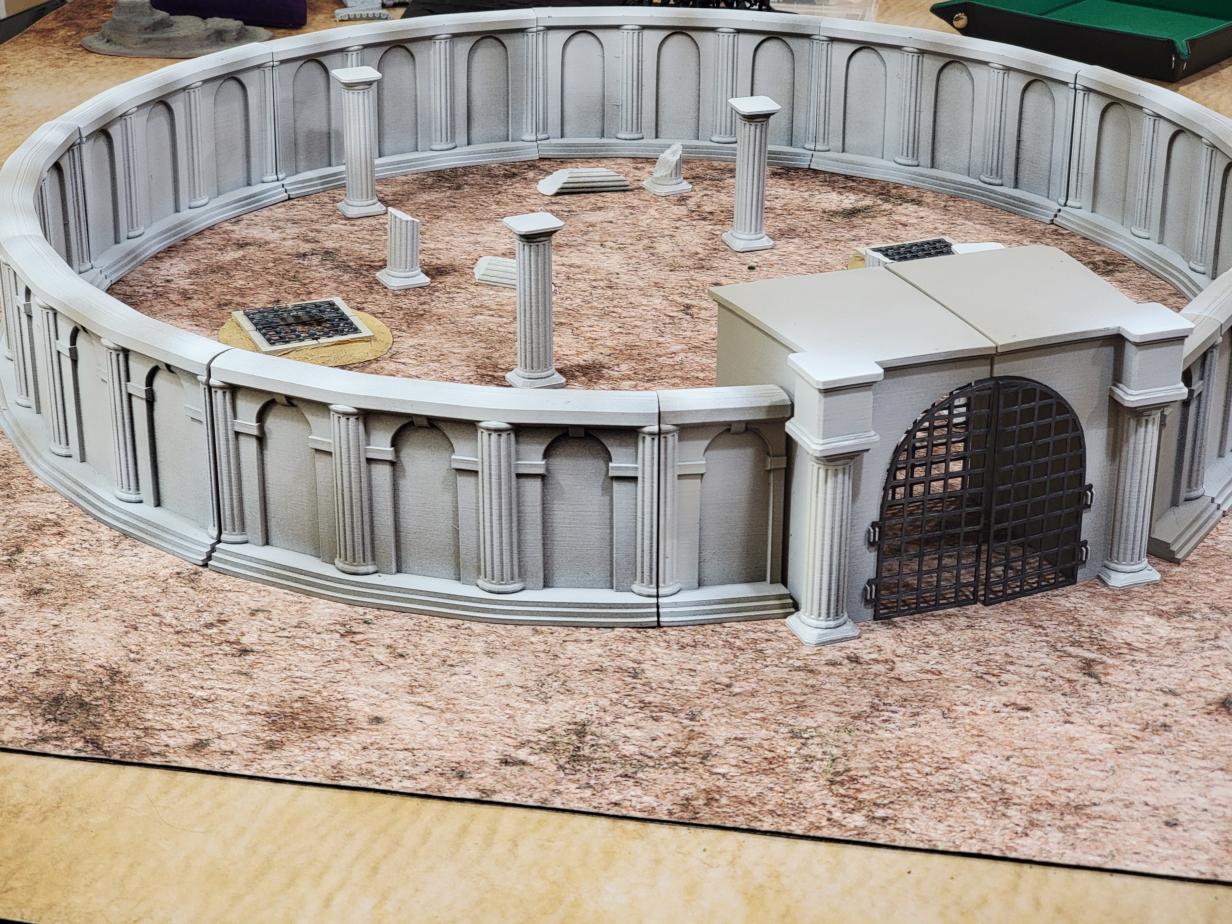 The arena itself is from Thingiverse: https://www.thingiverse.com/thing:2250767 For the pillars and such, search that person’s profile. I recommend it and may even print a second copy to be able to host a Sons of Mars game day sometime. It’s about 1KG of plastic to print off and easy to paint, as evidenced above.