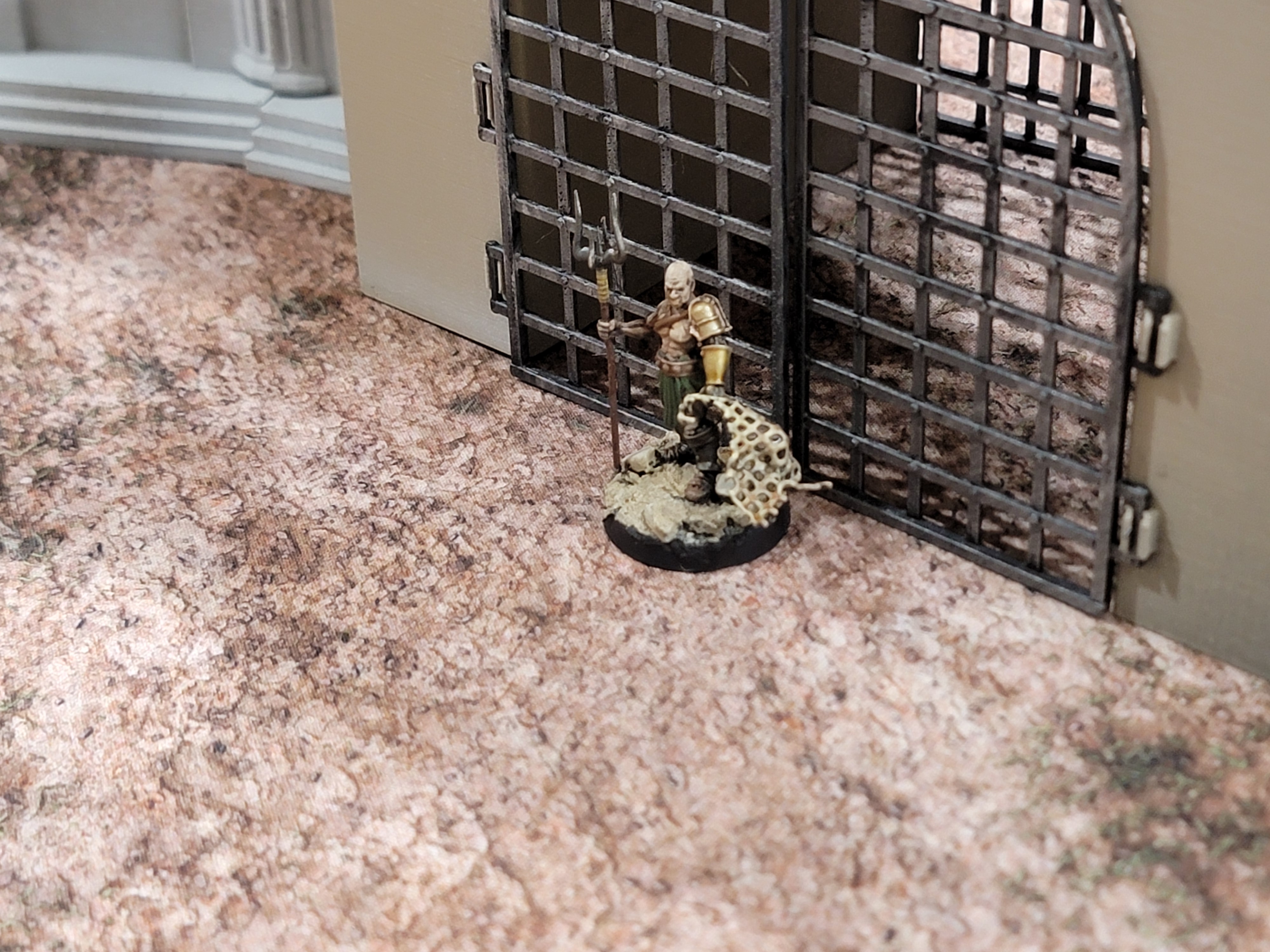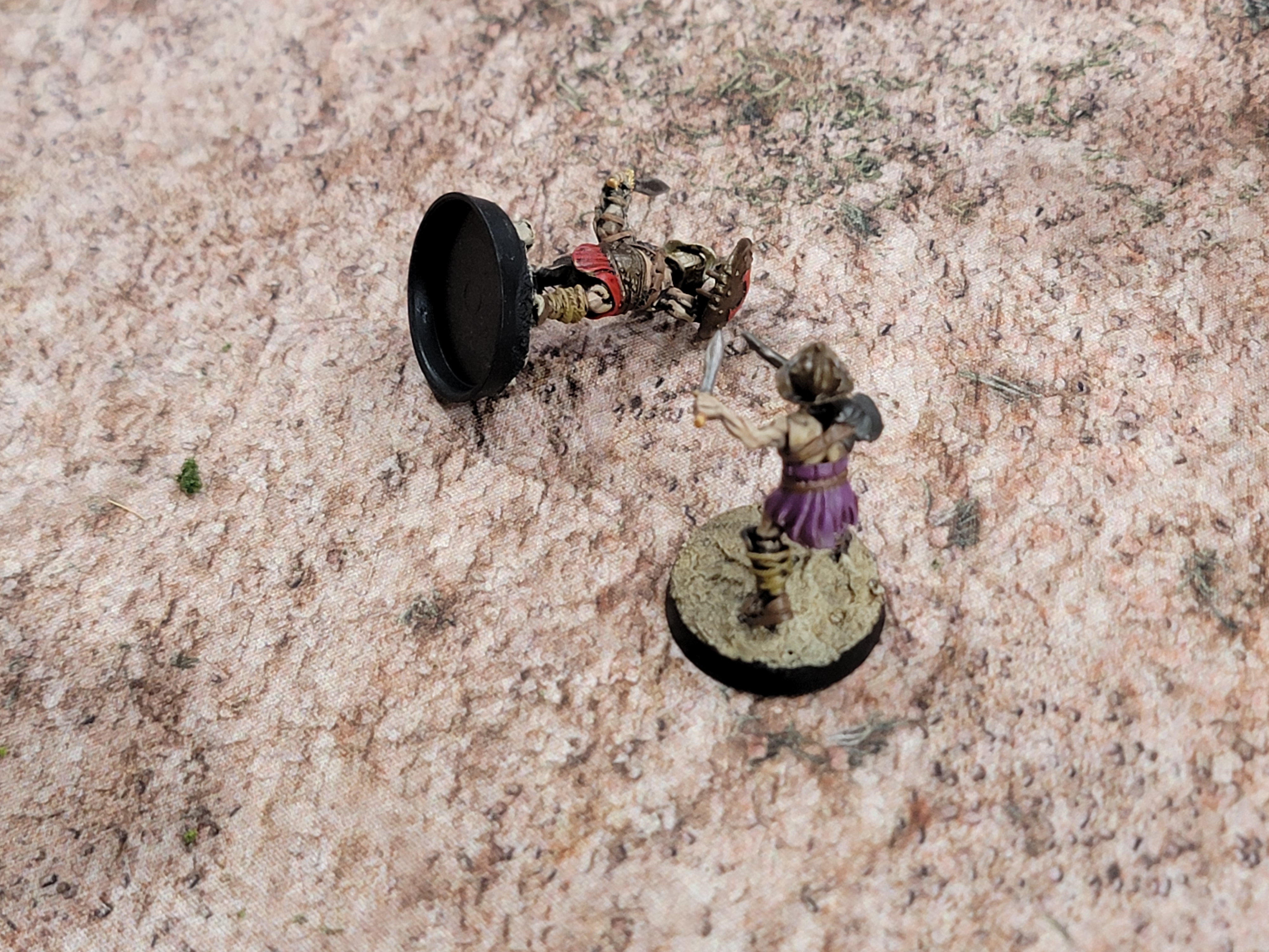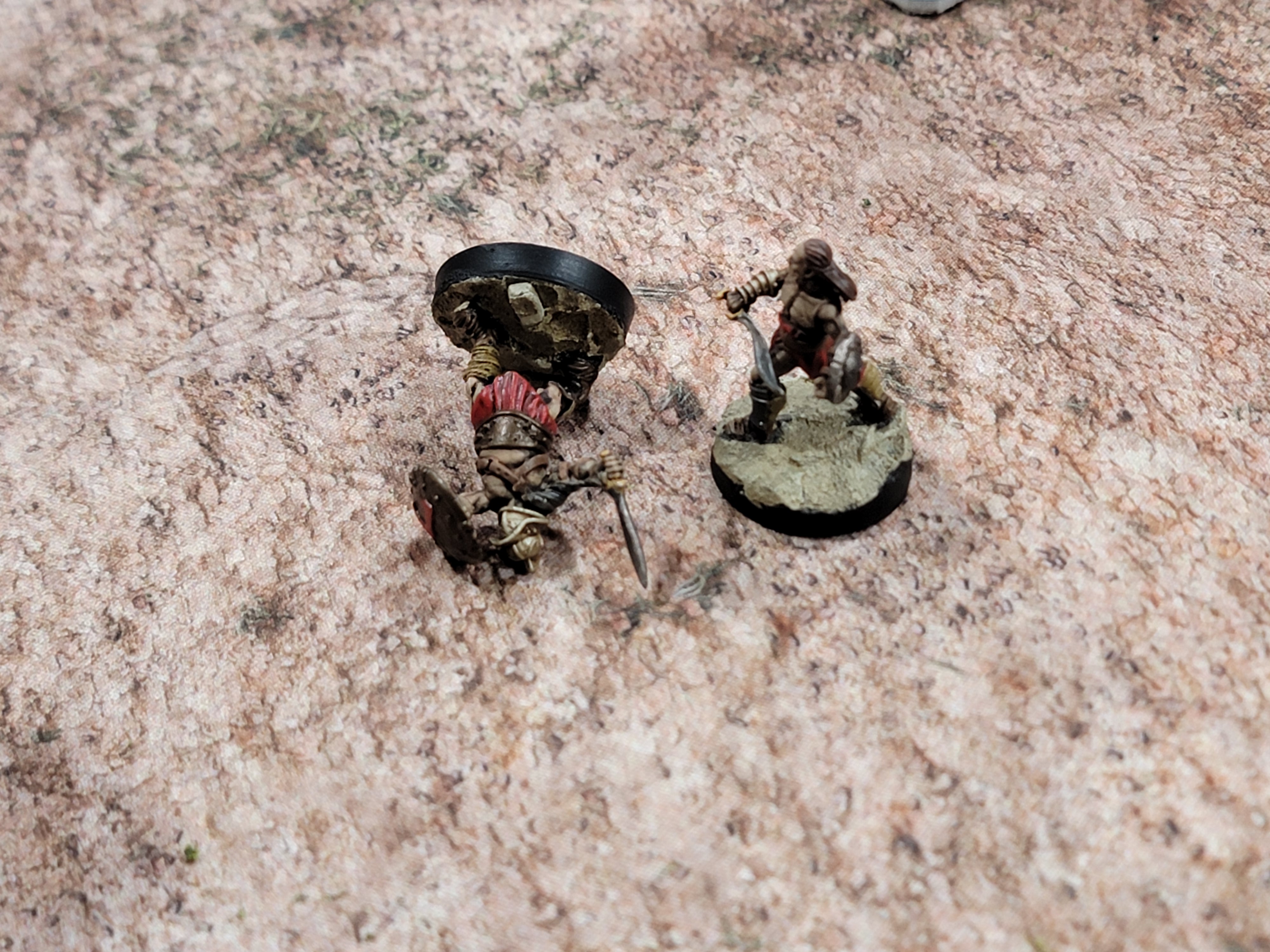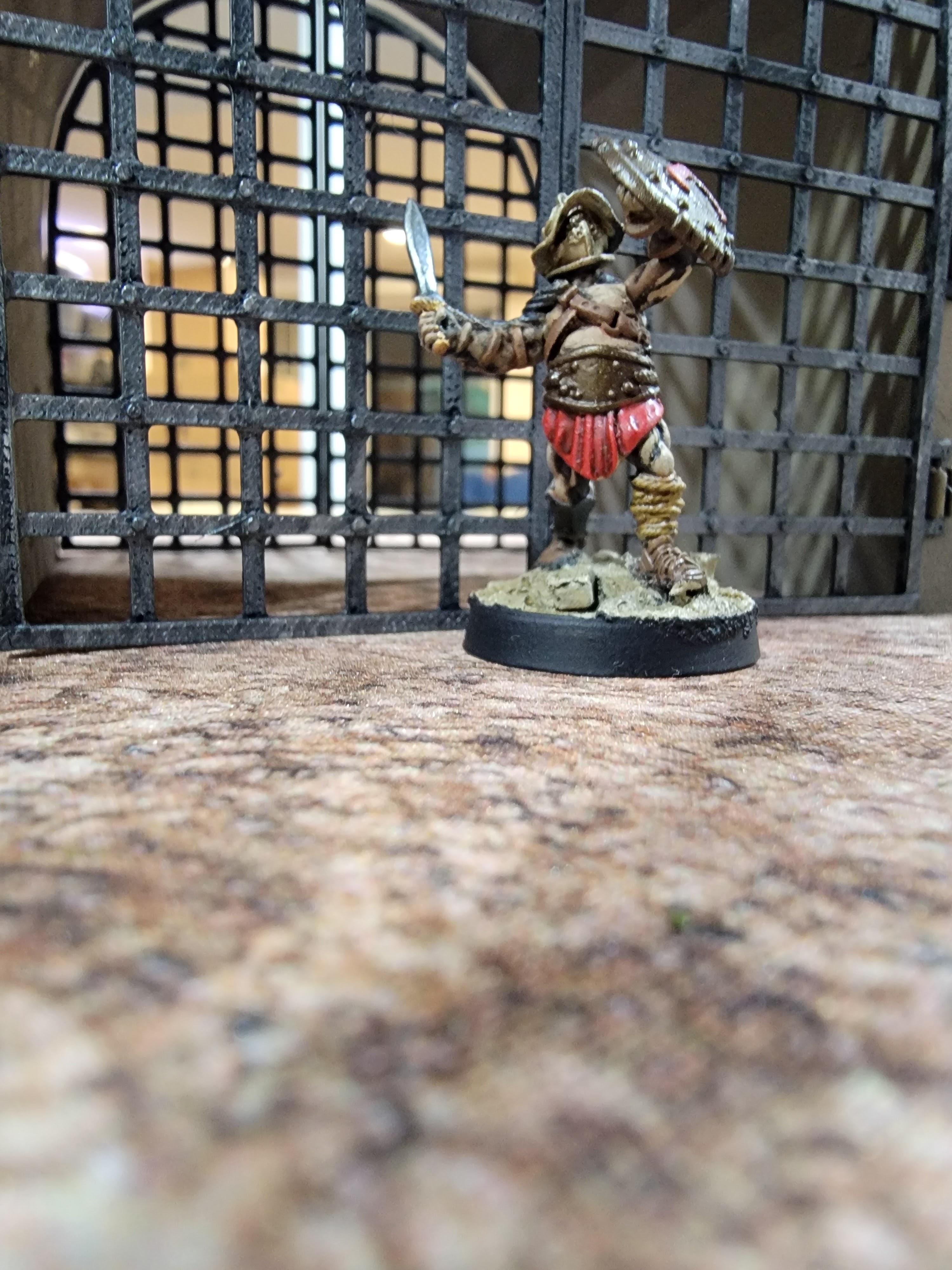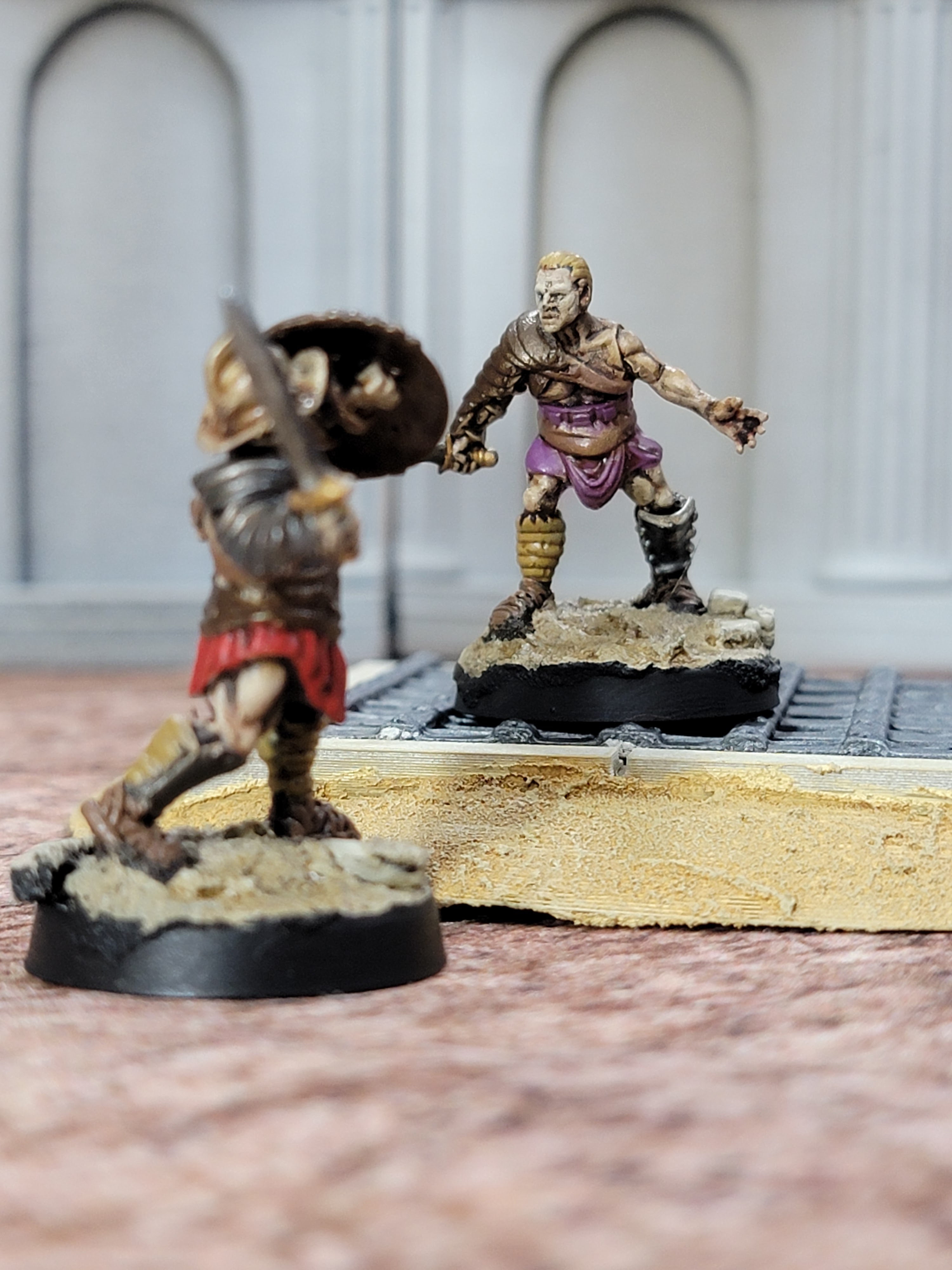 I suppose this post now doubles as an “Off the bench.” I painted all of these models and the arena itself just this last weekend. The arena was super easy: it’s all just rattle can automotive spray paints. I started with brown, then khaki, then warm white. The models are all painted via traditional means and all brand new off the resin printer.