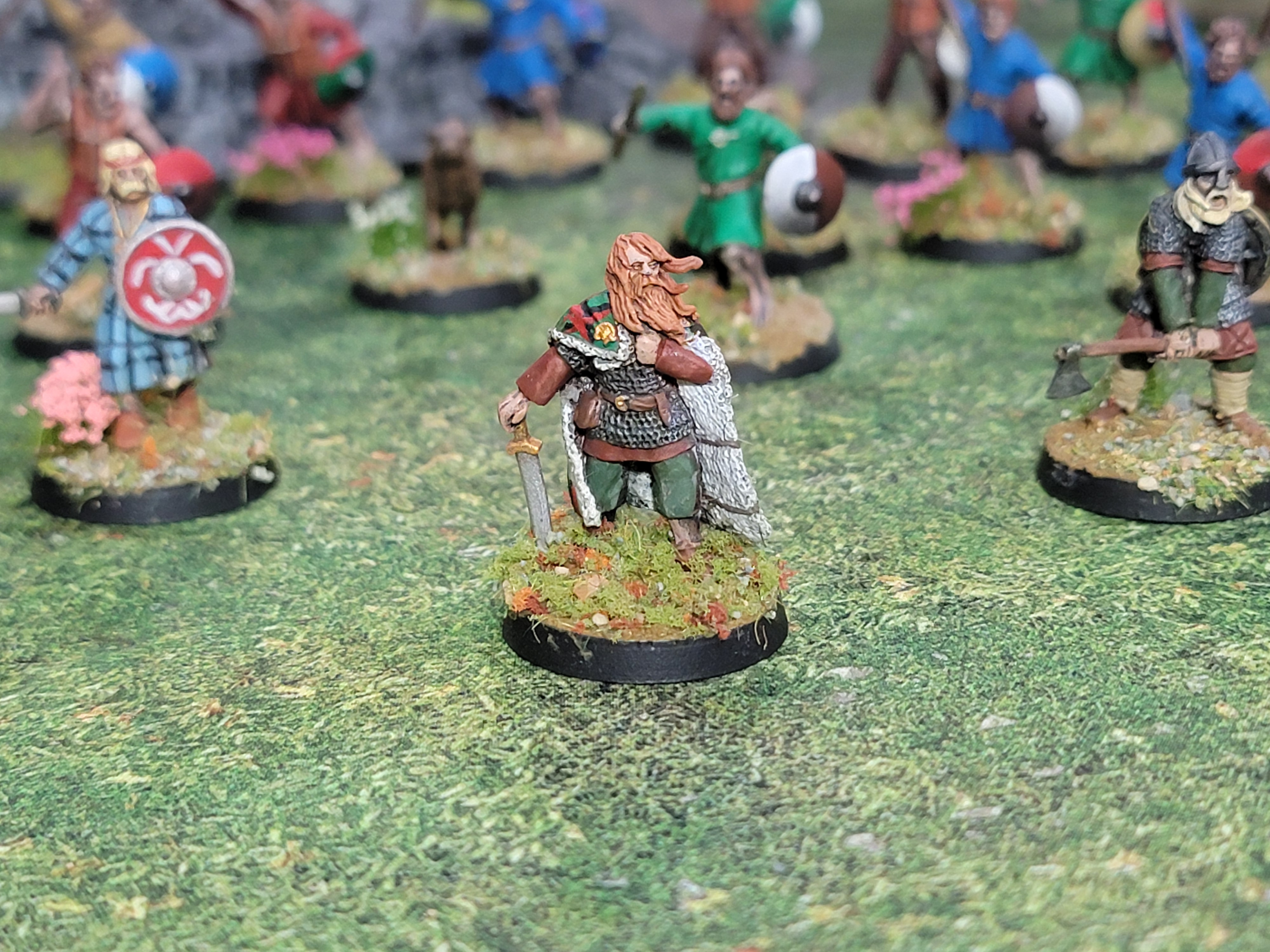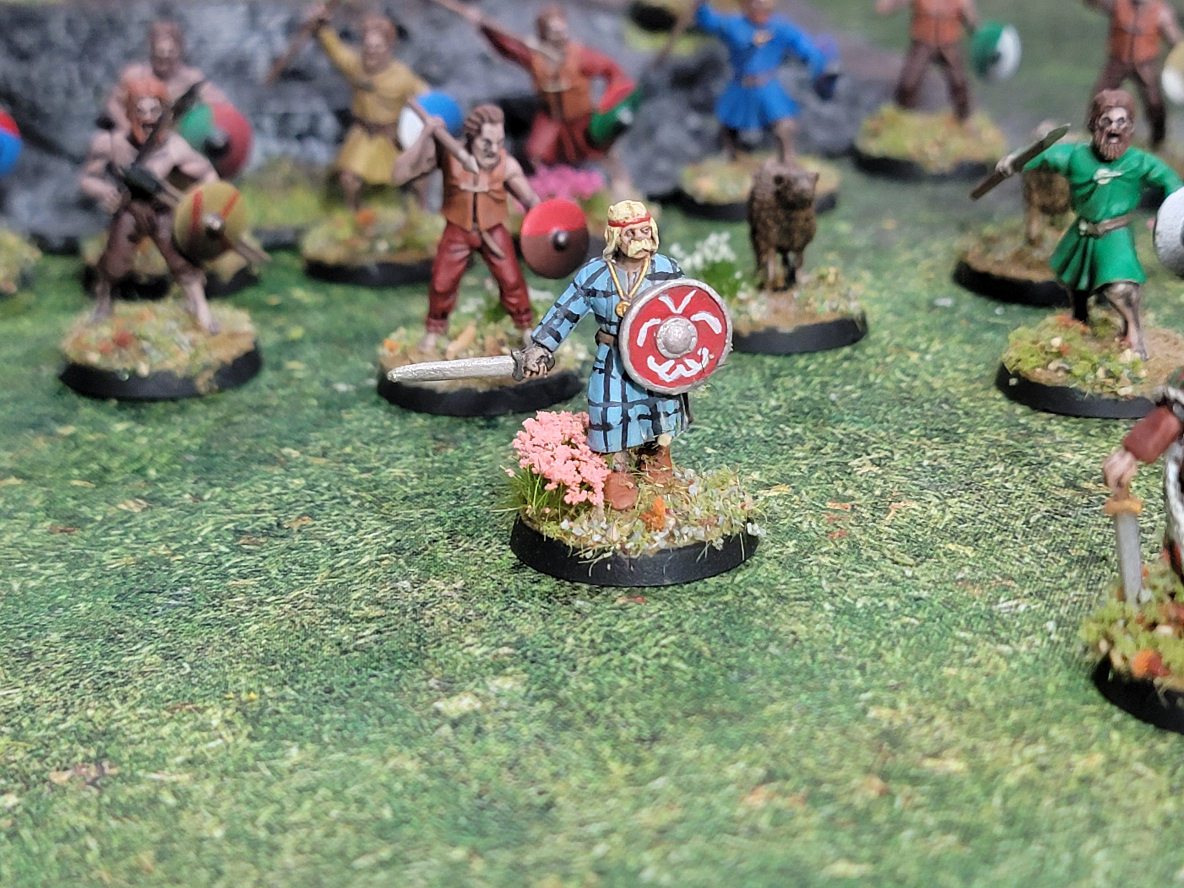 The tartan patterns are nothing fancy but they sure did take me a while! I considered doing some on the infantry but the heroes dissuaded me of doing so rather quickly. Again, it helps these models to stand out. You’ll also notice one is a Viking–that’s because at the Battle of Clontarf the Irish actually had Viking mercenaries on their side!