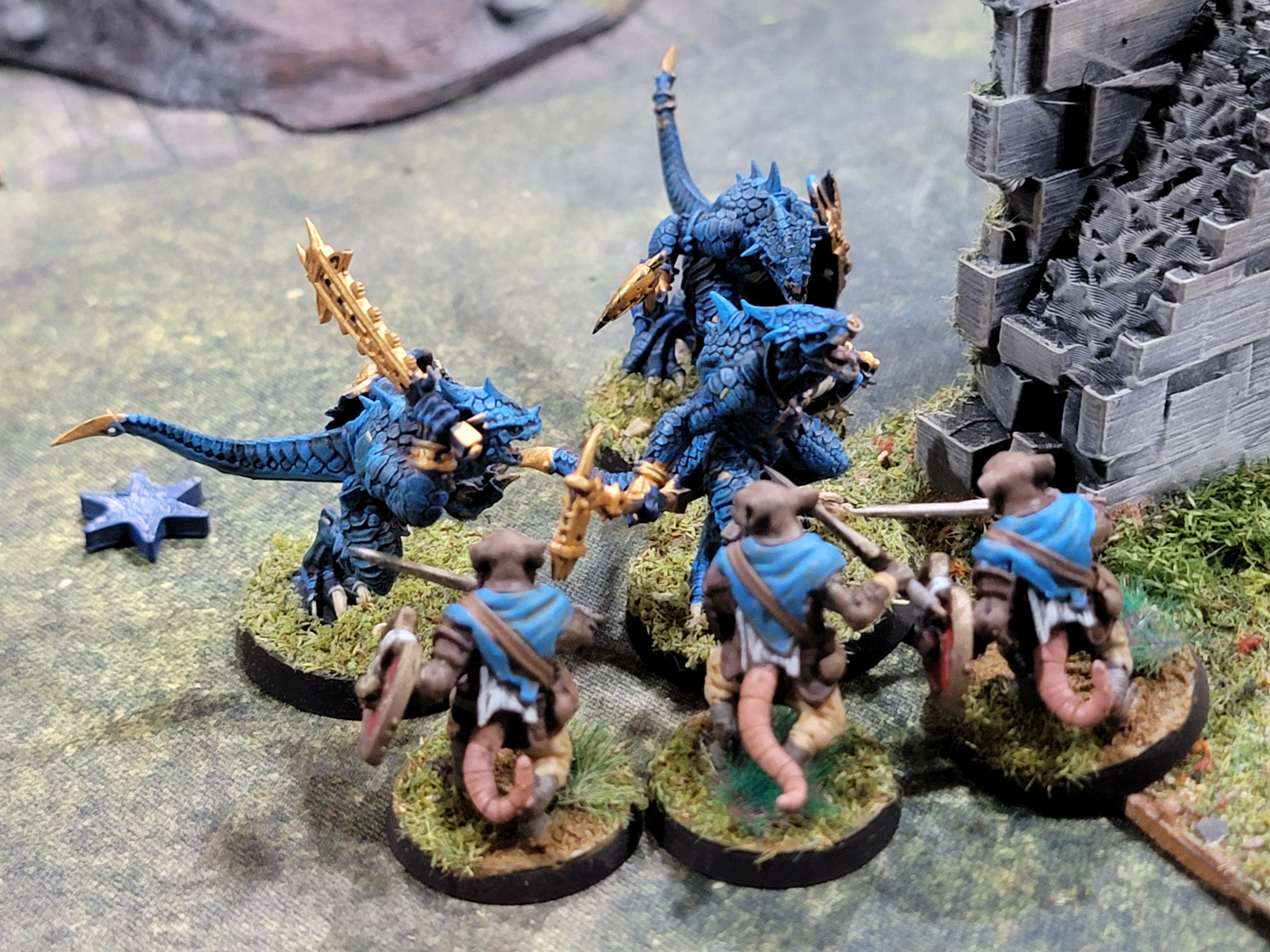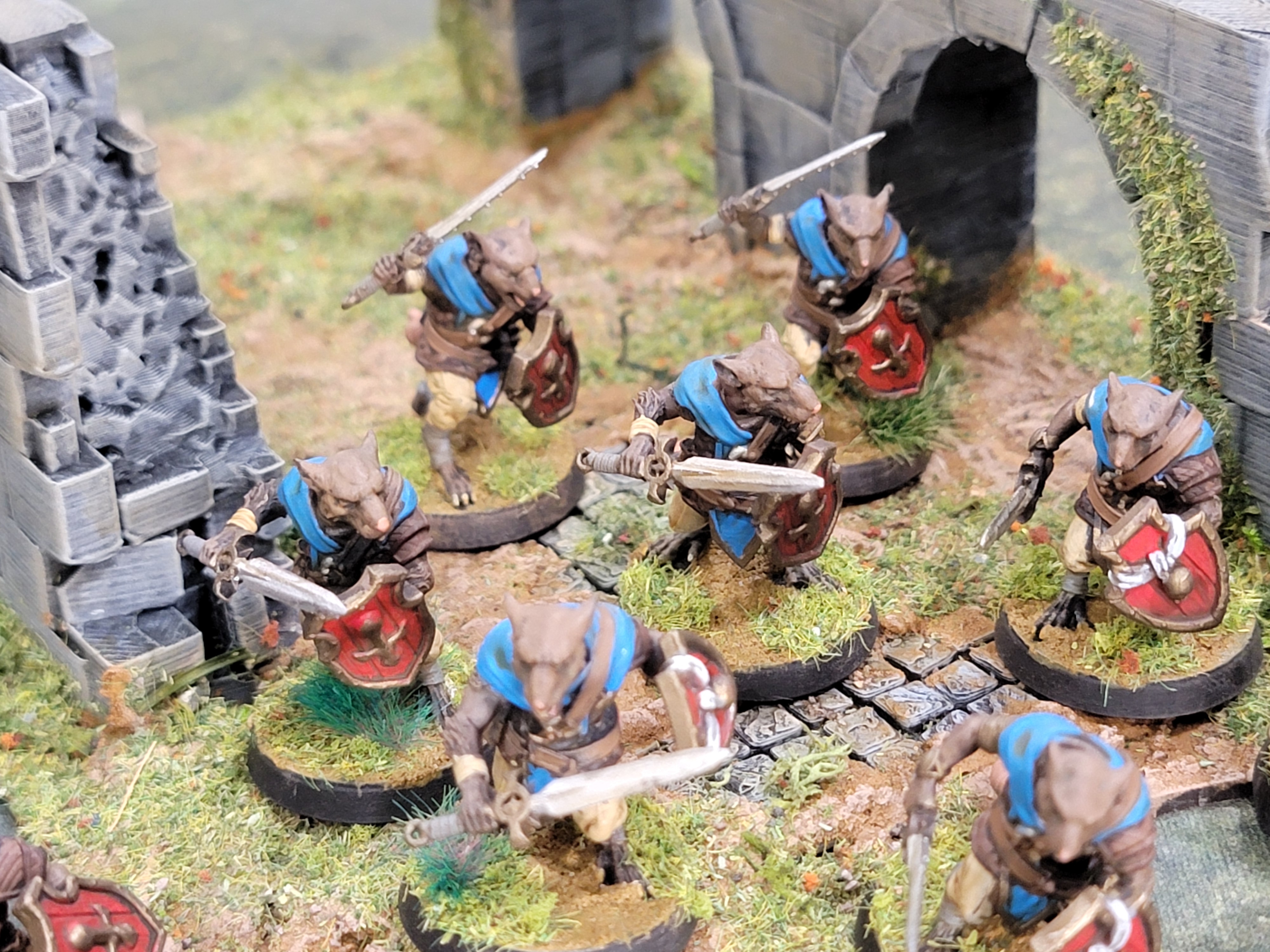 Between the two groups I like the Saurian models more. They’re a great example of just enough detail. My son managed to finish them and technically caught about 90% of the detail. He’s, uh, ten, so don’t judge the models on the paint job. The Ratmen were a little over-detailed. Busy, I suppose. This made painting them painful due to all the small things that had to be differentiated. I still really like the models and I plan to paint up 40 of them regardless. Note that I could have chosen my colors better. We were painting in the living room so I stuck with the dark bronze metallic that… really didn’t pop. I realize now it even blends in with the fur tone. I’ll have to fix that in future batches.