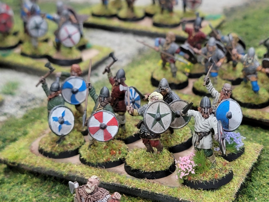 Jokes aside. This was very satisfying and I think they look great massed together on their bases. This puts a wrap in my required preparations for my upcoming Midgard game. From here I plan to paint up a few token sets for my players to take home. If I run this battle again, I’ll expand the armies with fantasy elements, like jotun and fae folk. I’m really hoping to nail this intro game for the club.