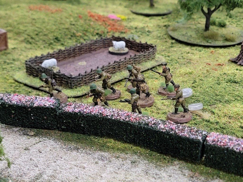 See, I was be tormented by an LMG team well positioned inside the bottom floor of the house adjacent to my anti tank gun. At one point I had a section sitting next to that house. I could have readily mouseholed my way in.