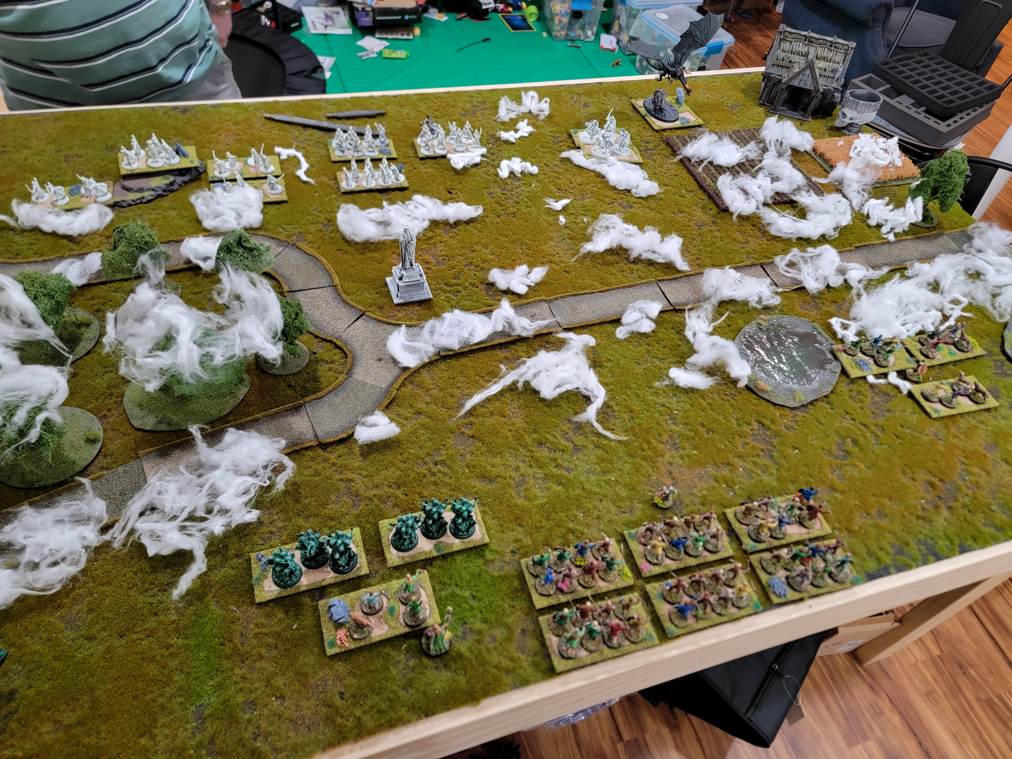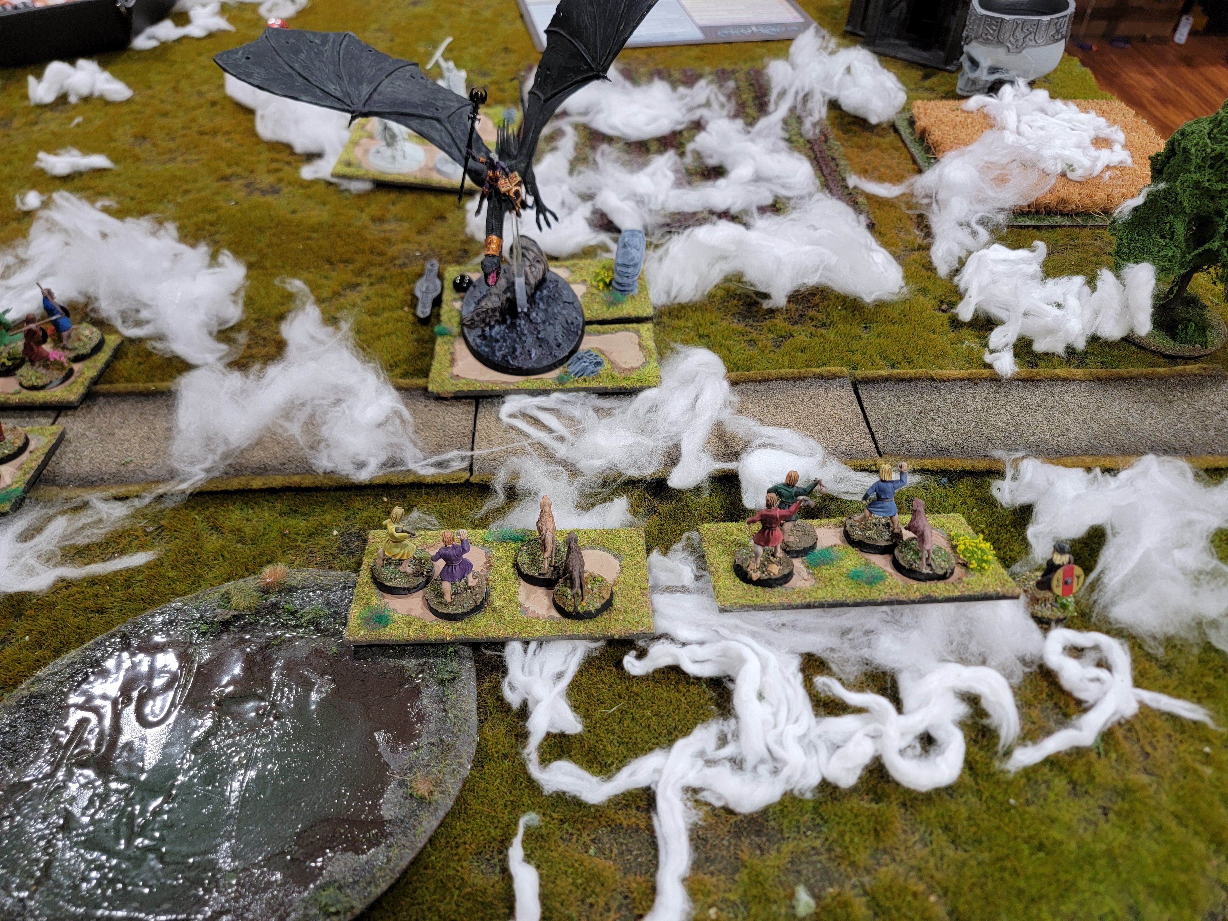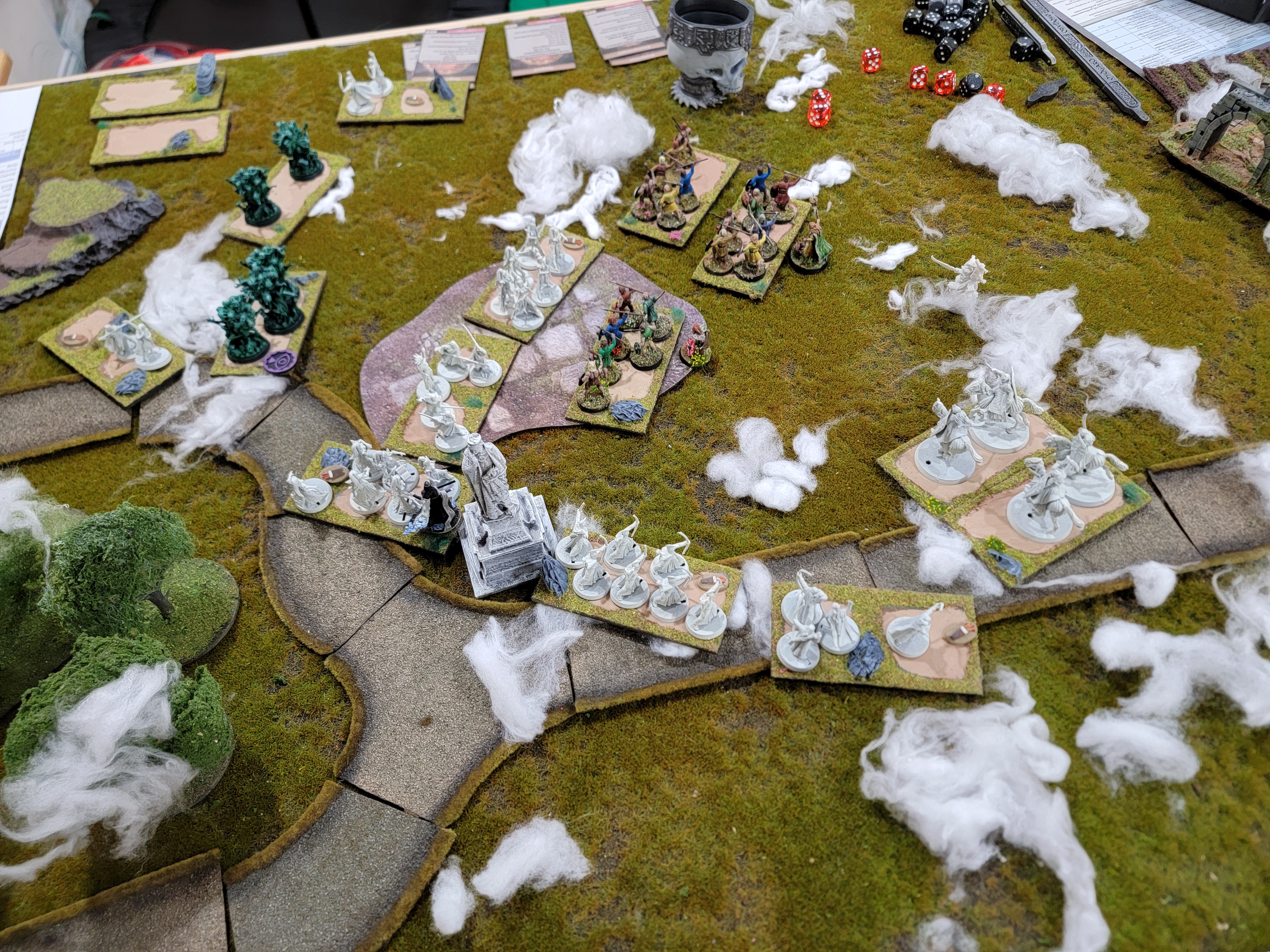 Time is a funny thing: I’m writing this before Tentcon, so if you’re wondering where the summary of the Battle of Clontarf Midgard game is, the answer is “somewhere in the future.” I got another game of fantasy Midgard in with the same lists as last time. We played the Mists scenario, where you have to coat the board in mists and deal with their effects.