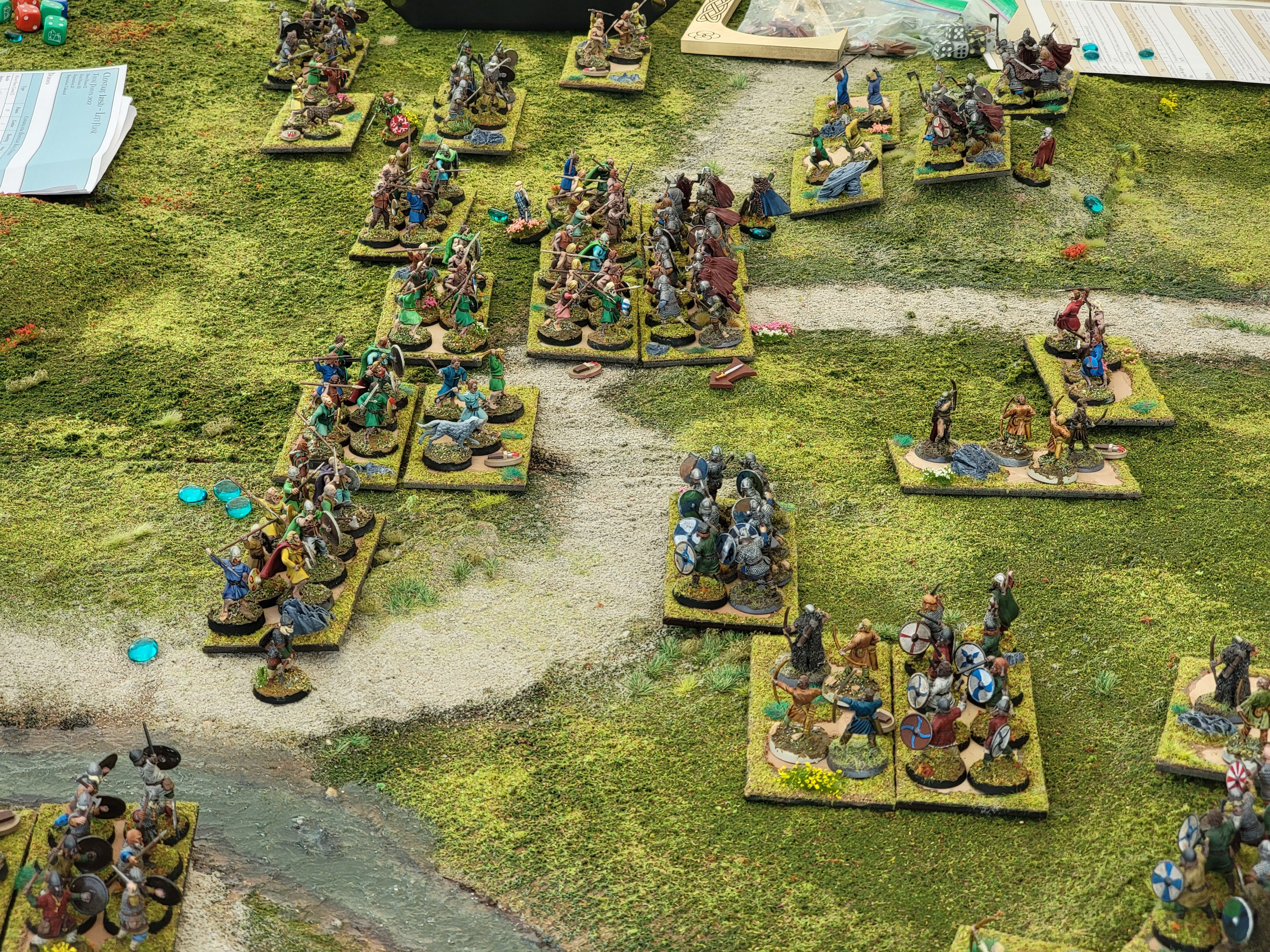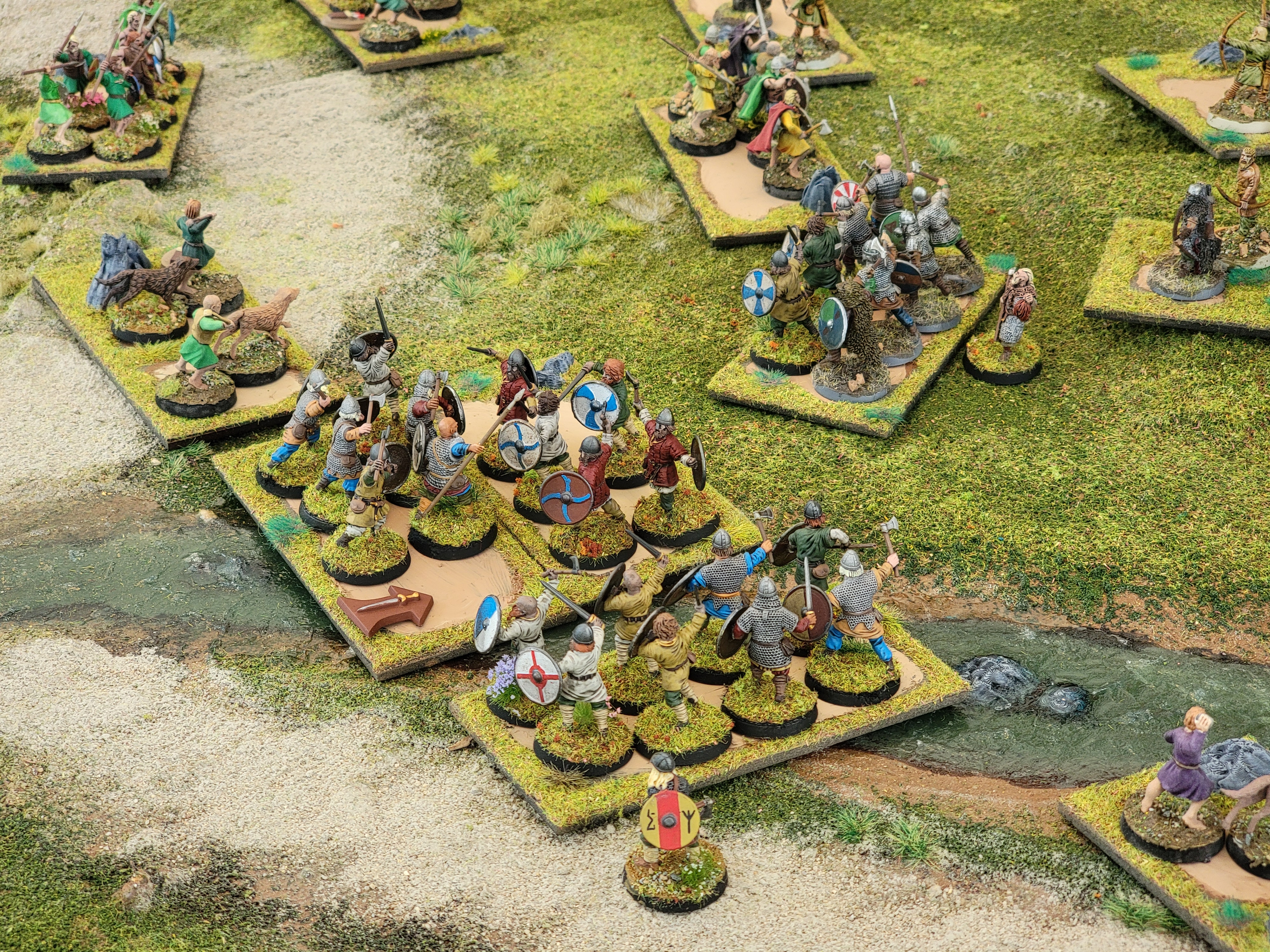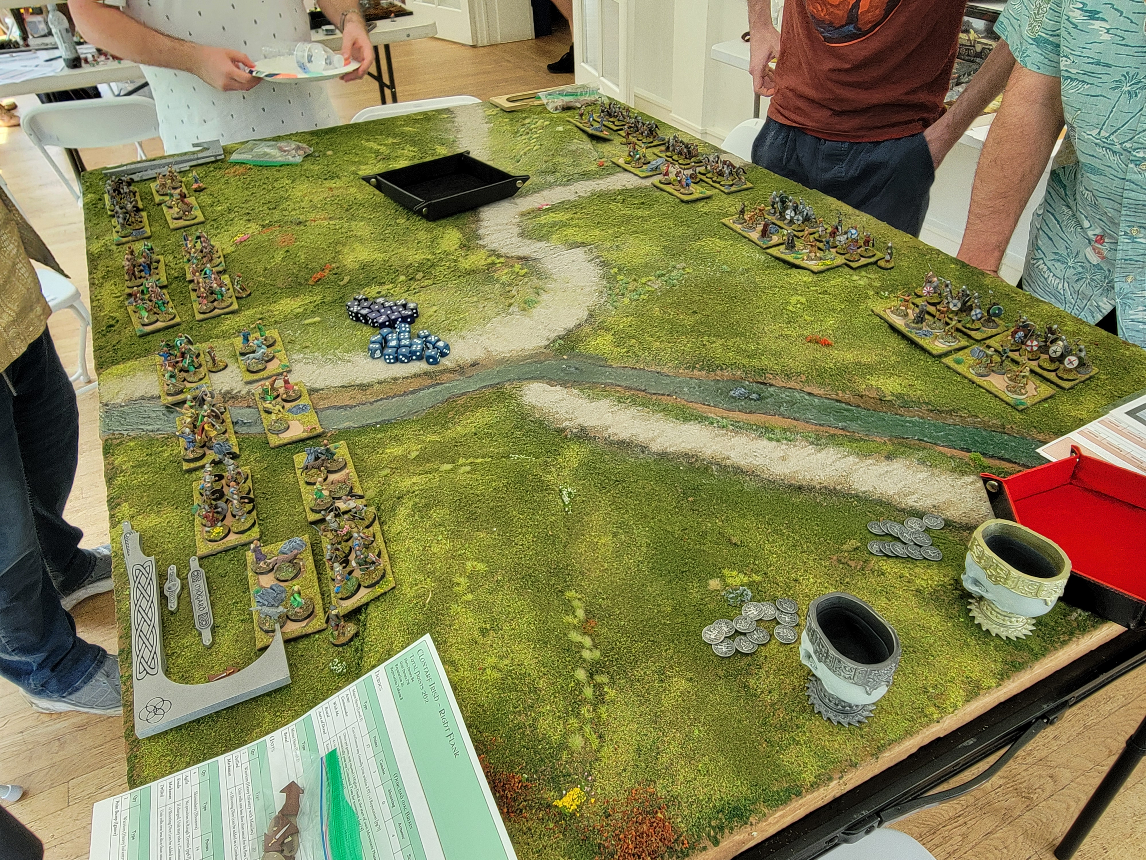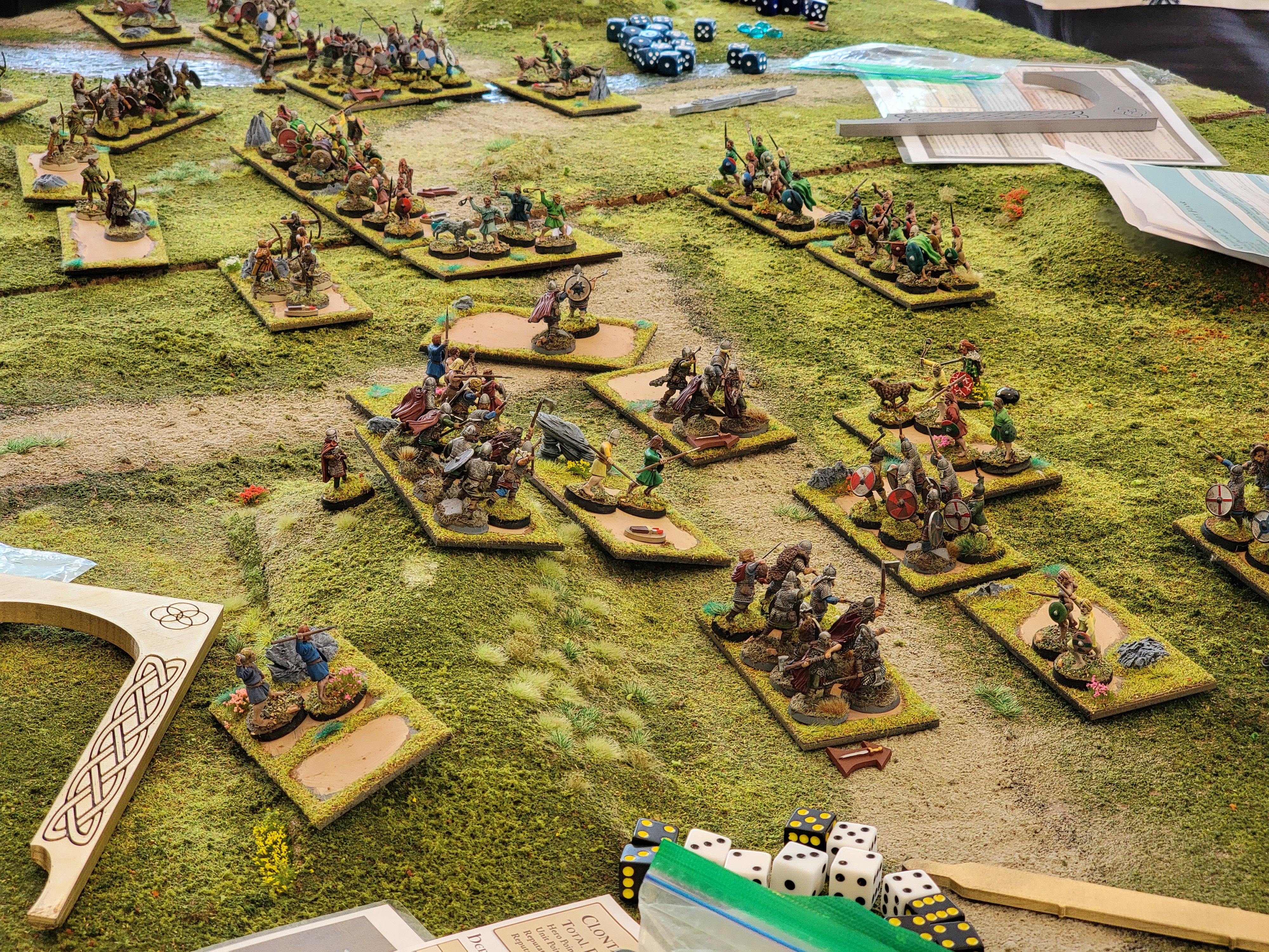 Well, here it is! I’ve spent months thinking about it, painting, building a board no one should ever need to build, and talking about it so much no one ever wants to hear about Clontarf in my office ever again. At Tentcon 2025, we ran The Battle of Clontarf in Midgard and I’d say it went pretty darn well. Here’s a link to the scenario–note that I ignored the capturing ground rules. Ultimately, I don’t think that works well in Midgard as a victory condition. We played a straight up meeting engagement with the only extra Reputation being granted for winning the destined historic duels.