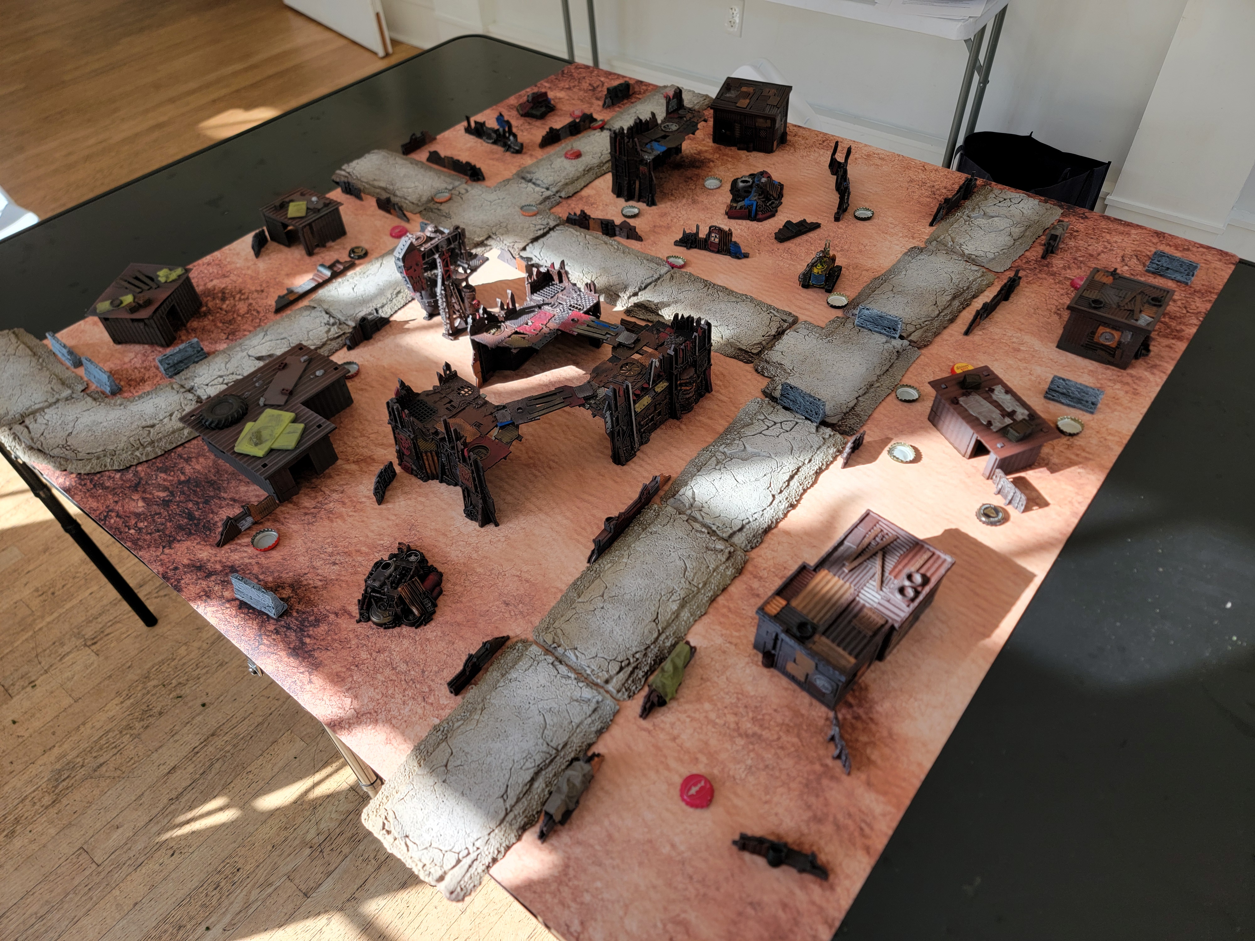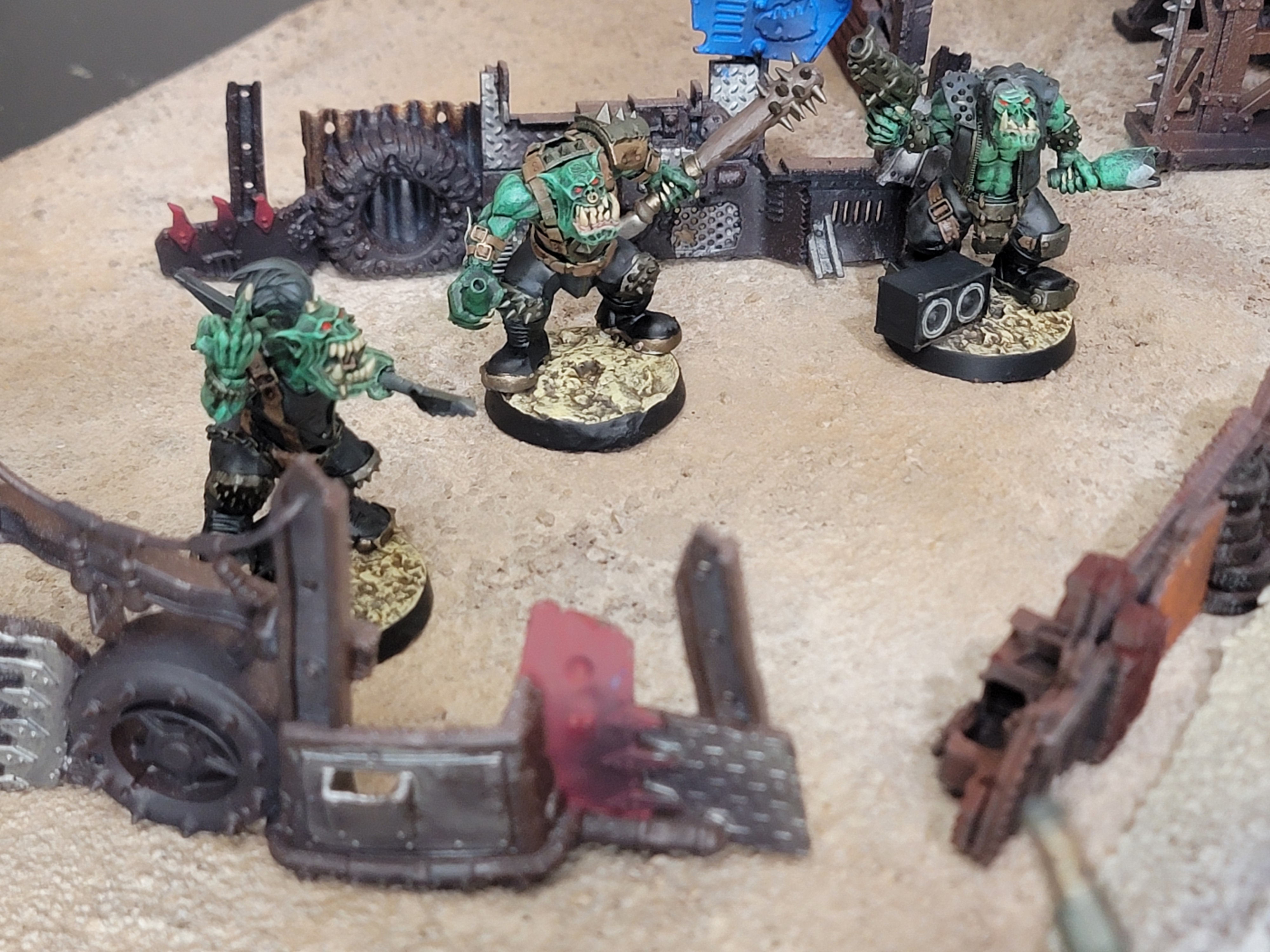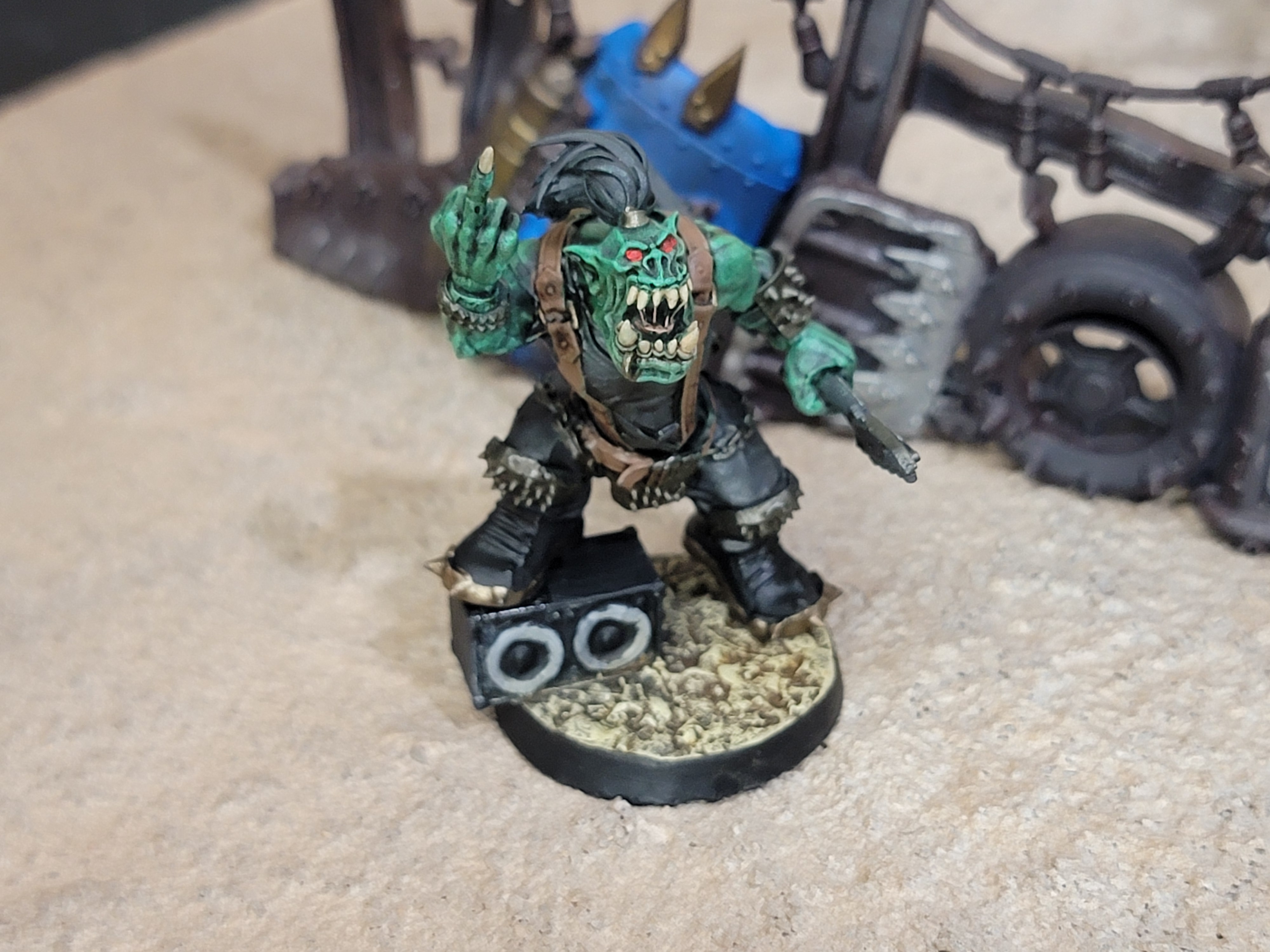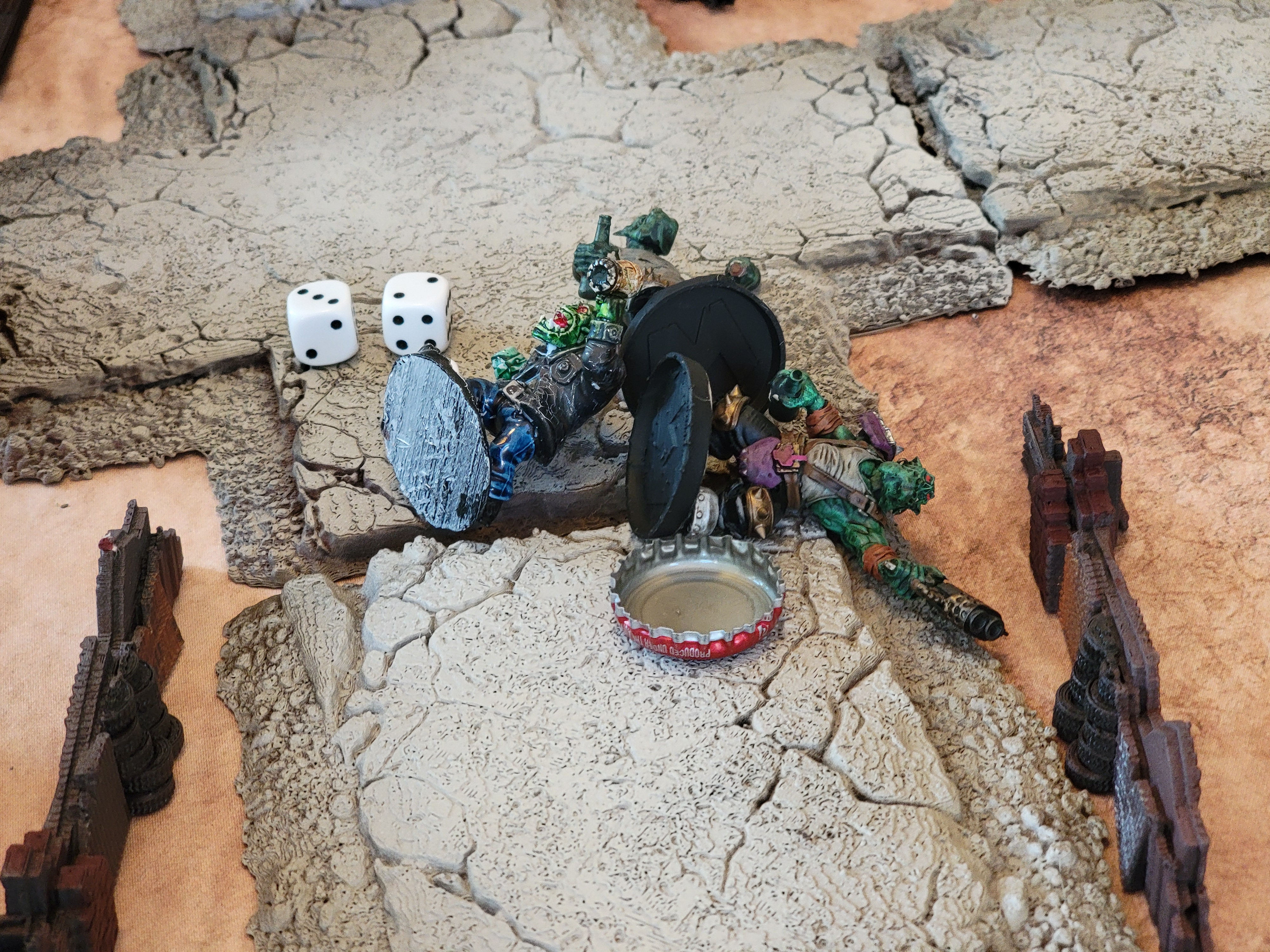 Space Gits! is a dumb game about drunken space orcs stumbling around, kicking and shooting each other, and gathering bottlecaps before running off the board after a 30 minute real world timer goes off. It was fun. I painted a bunch of Orky rockers for it. Call it a bonus “Off the Bench.”