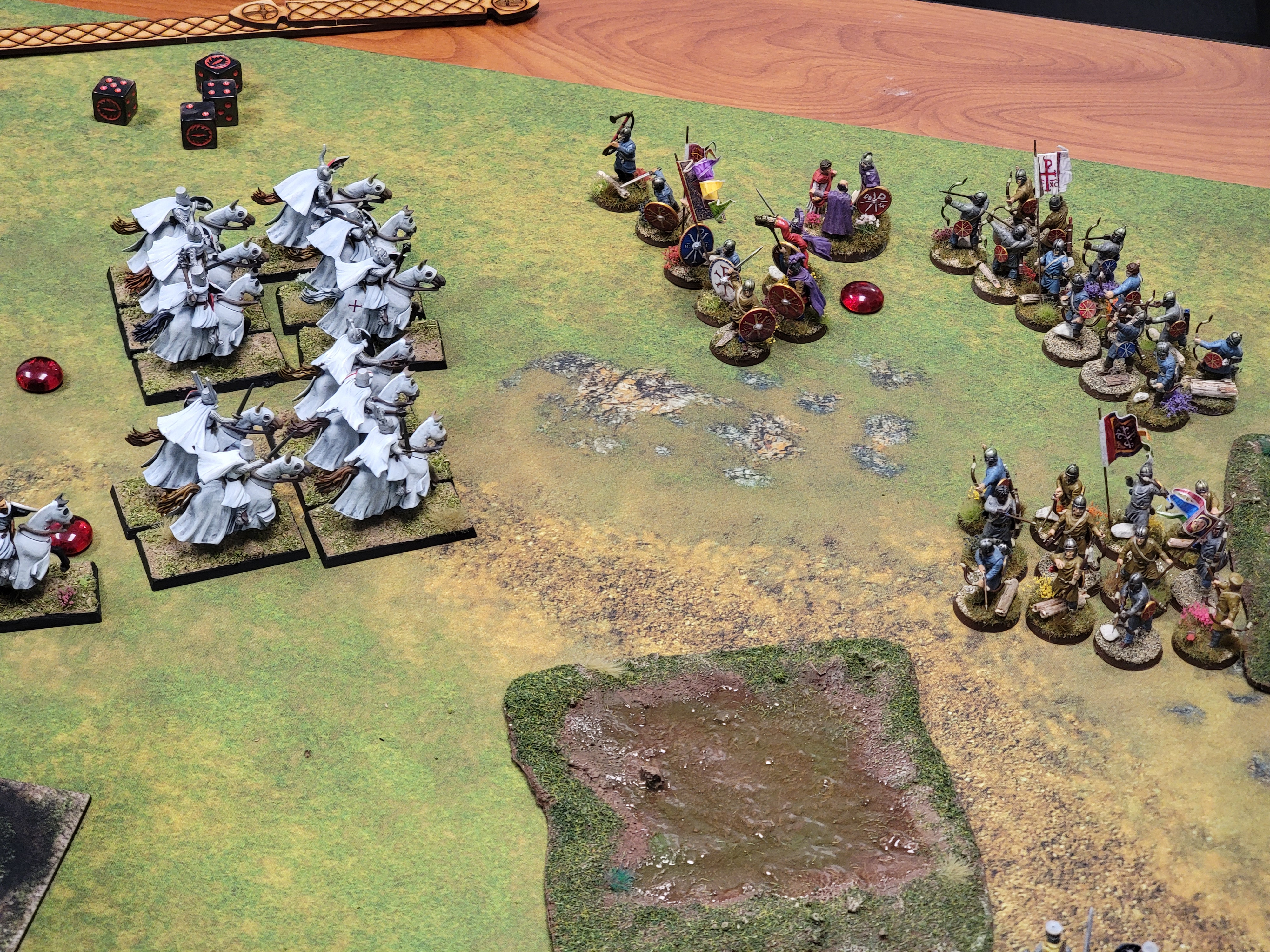 I had the chance of victory but my opponent used my fatigue to cut all my riders to S movement repeatedly, which stopped me from making contact and ultimately allowed his archers to do their job. Having not played much Saga beyond one opponent years ago now, it never occurred to me how much you could use fatigue to stop an enemy’s plan outright.