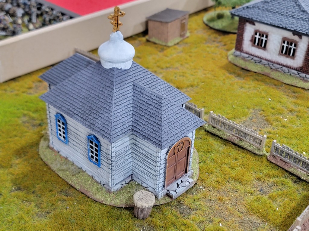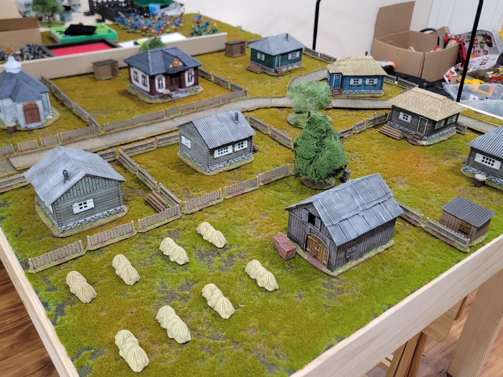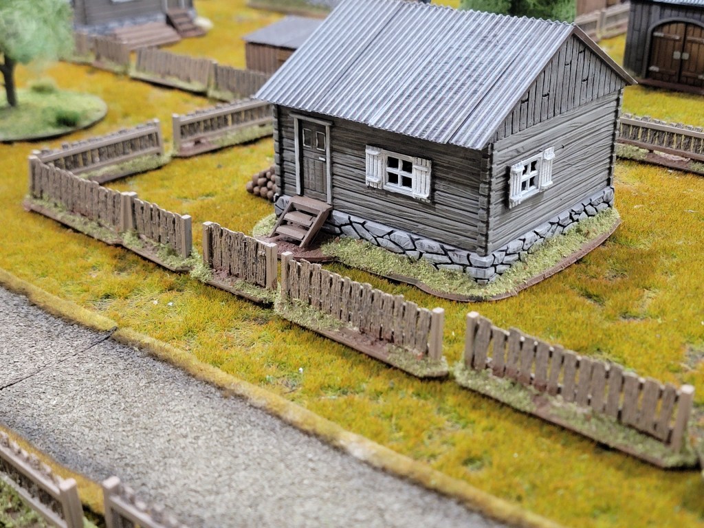 I’ll note that the corrugated metal roofs are somewhat ahistorical. Most rural villages would have had thatch or just plain wood roofs, angled steep to help shed snow. It’s not impossible, mind, as the material was available. It’s just not common.