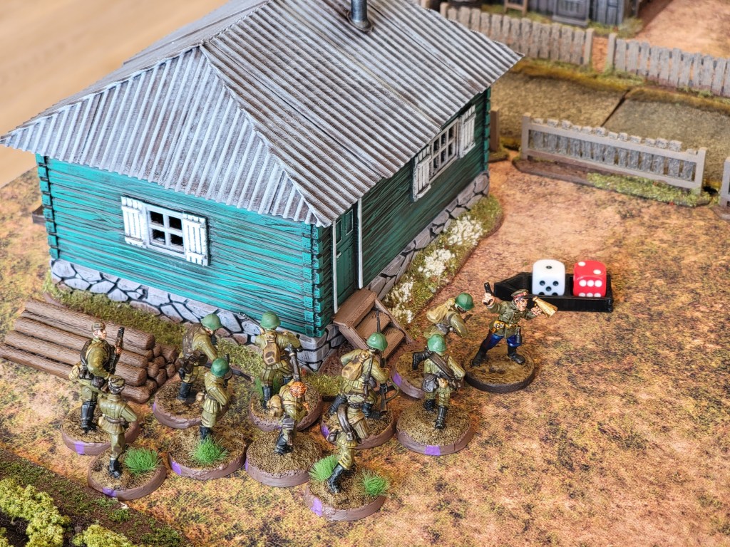 Altogether, I think the set looks great. I realize now I didn’t print off an extra outdoor storage shed and I think I’ll go back and do so while I still remember the general basing mix. After that I may add snow to the set. I’ve always wanted to do so, but none of my opponents have snow based armies and I do think grassy armies look strange on snowy boards. We’ll see.